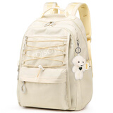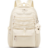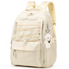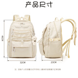 爱迪生发明家初中生书包大容量双肩包女生校园高中学生休闲背包 2271-4 米色