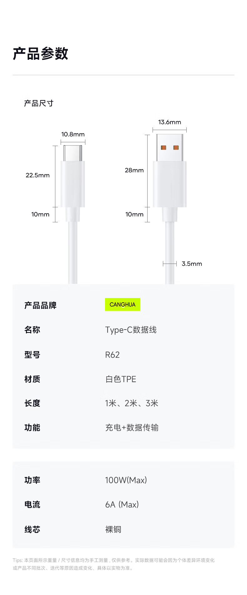 CangHua Type-c充电线2米6A/5A超级快充100W/88W/66W数据