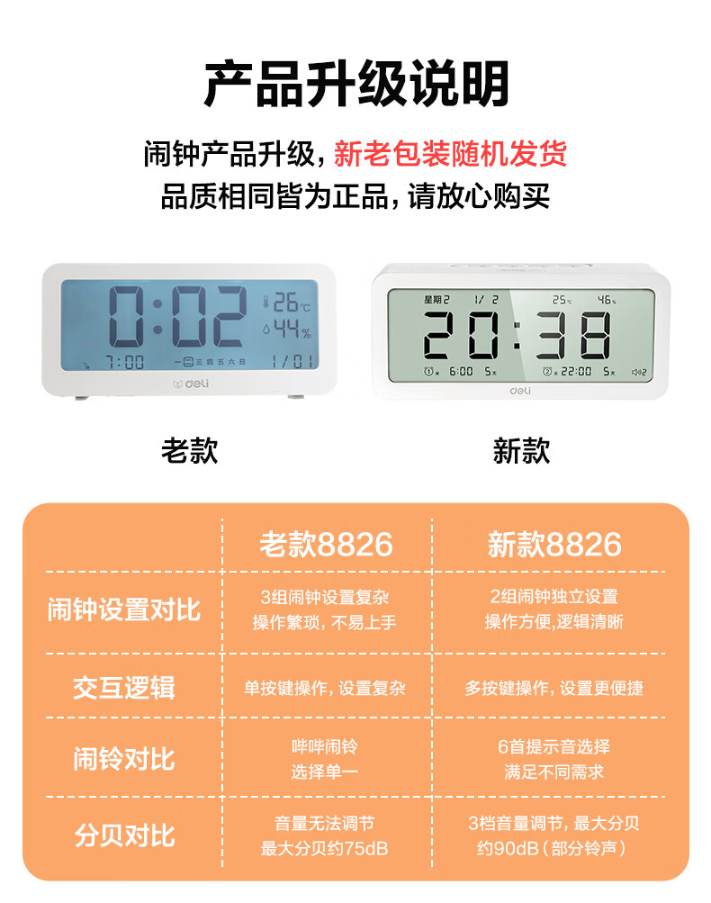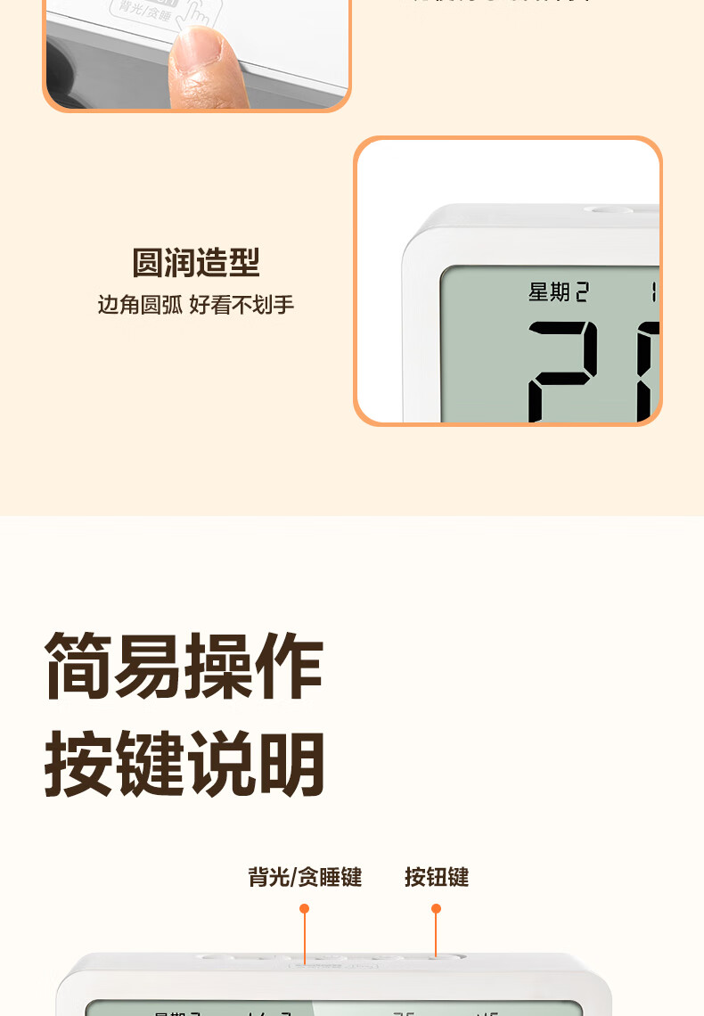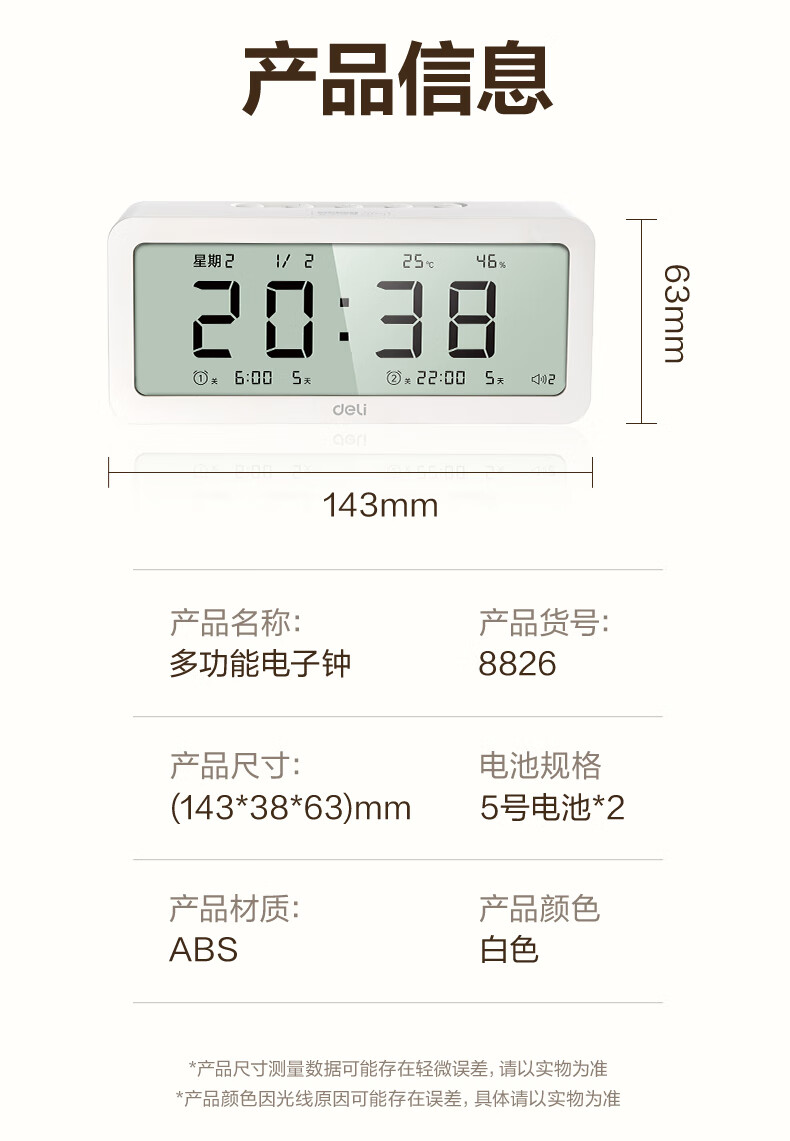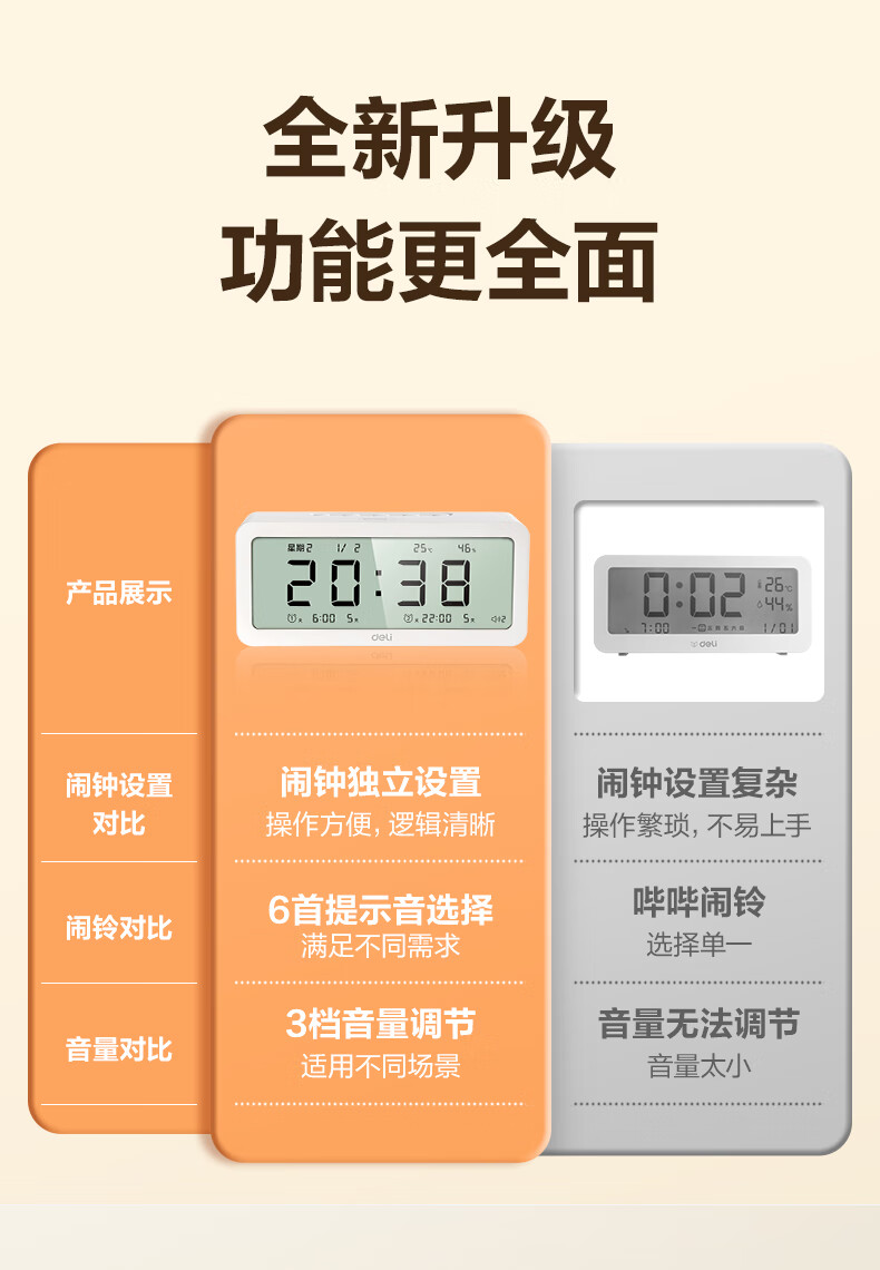 得力(deli)儿童节多功能电子闹钟学生儿童专用起床神器电子时钟温湿度计 白色开学必备开学季新年礼物