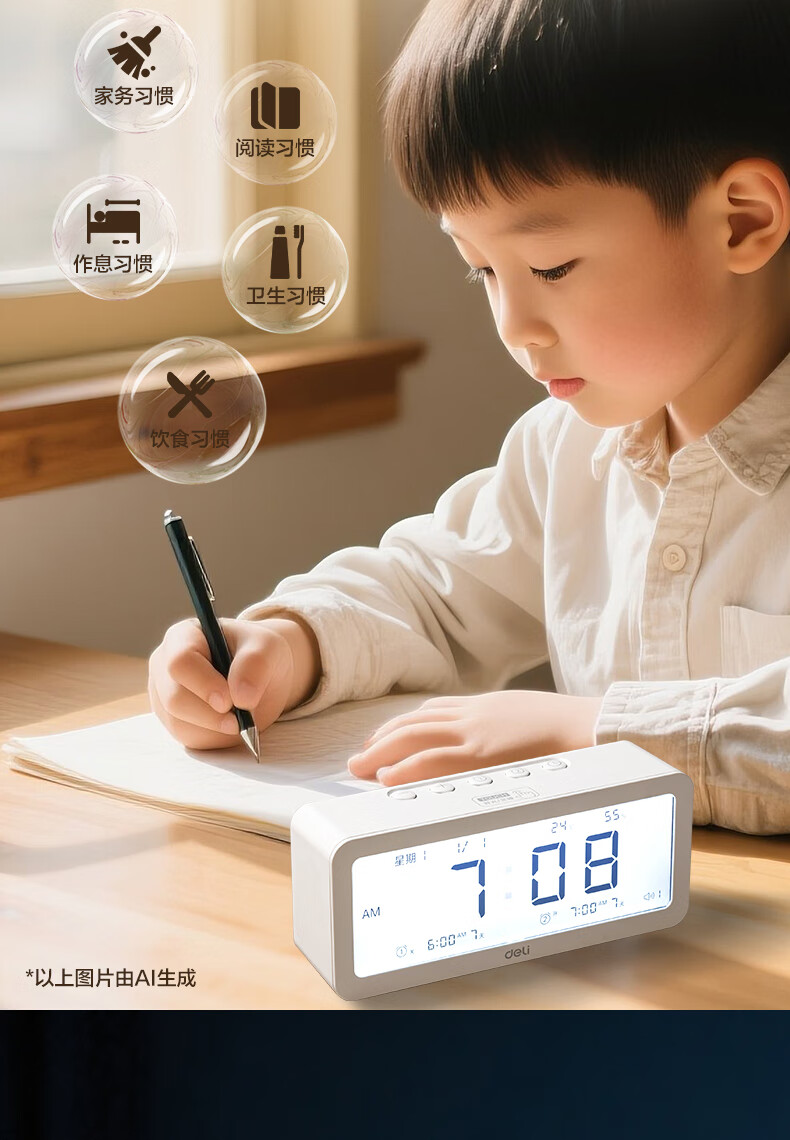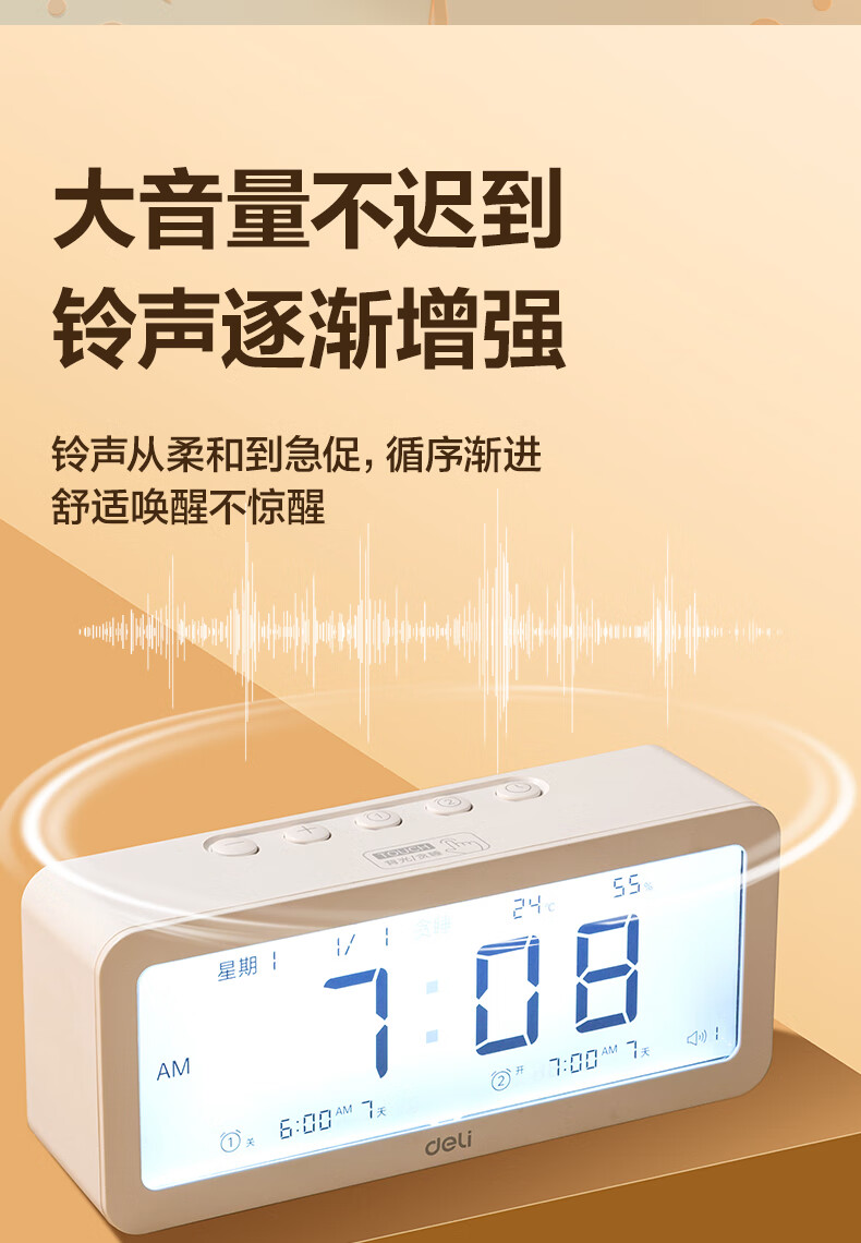 得力(deli)儿童节多功能电子闹钟学生儿童专用起床神器