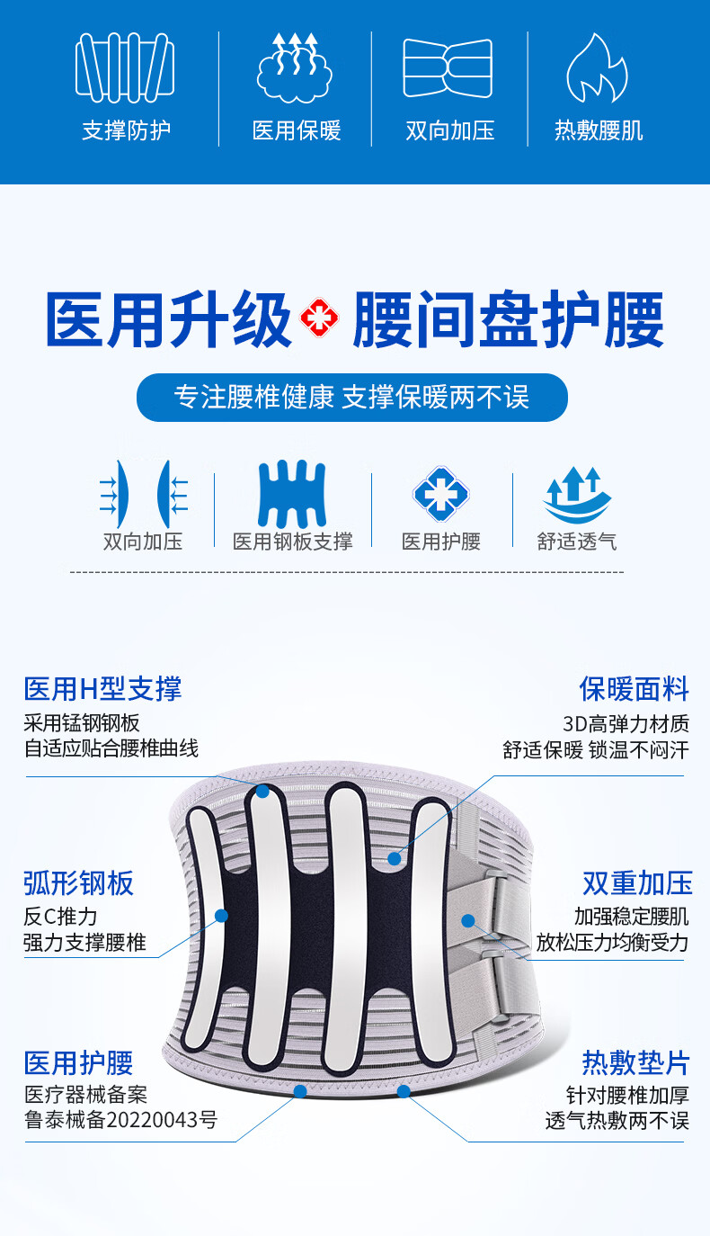 立姿(lizi)医用级护腰带腰间盘突出久坐神器腰肌劳损腰椎托术后钢板腰部支撑