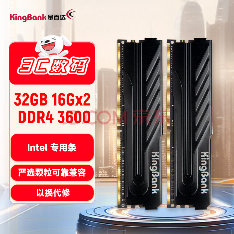 金百达(KINGBANK)32GB(16GBX2)套装 DDR4 3600 台式机内存条 intel专用条 黑爵 适配黑神话悟空
