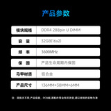 金百达(KINGBANK)32GB(16GBX2)套装 DDR4 3600 台式机