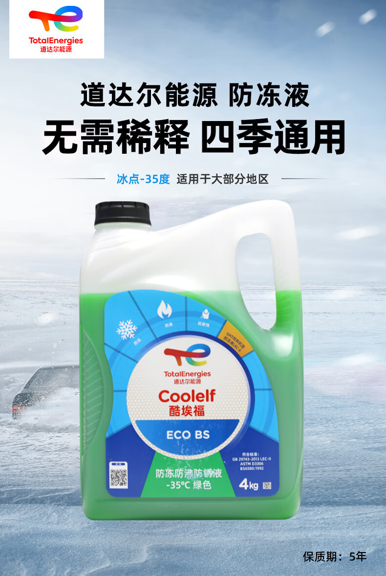 道达尔能源防冻液/冷却液/防沸液汽车发动机水箱通用 -35度 4kg装绿色