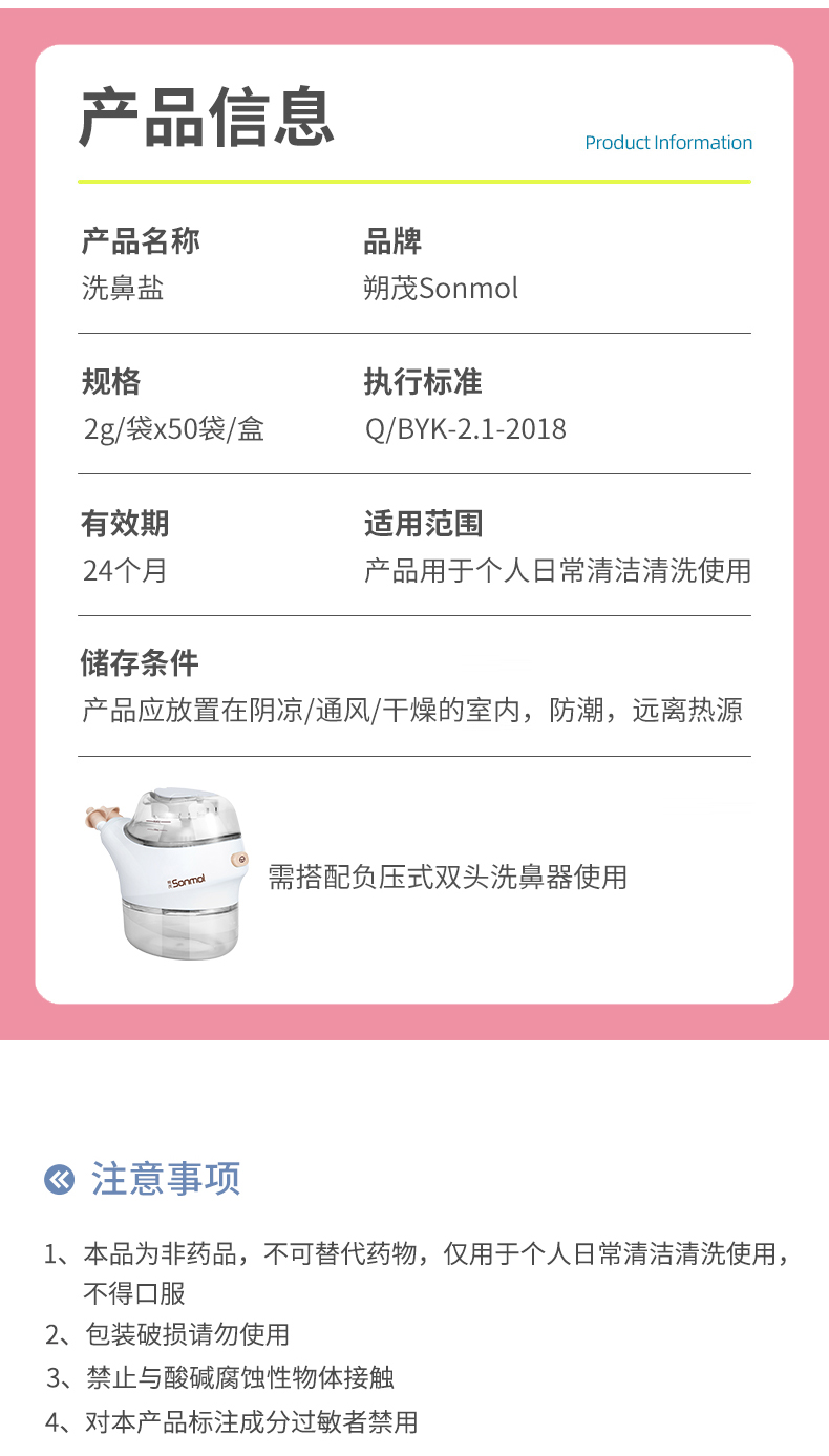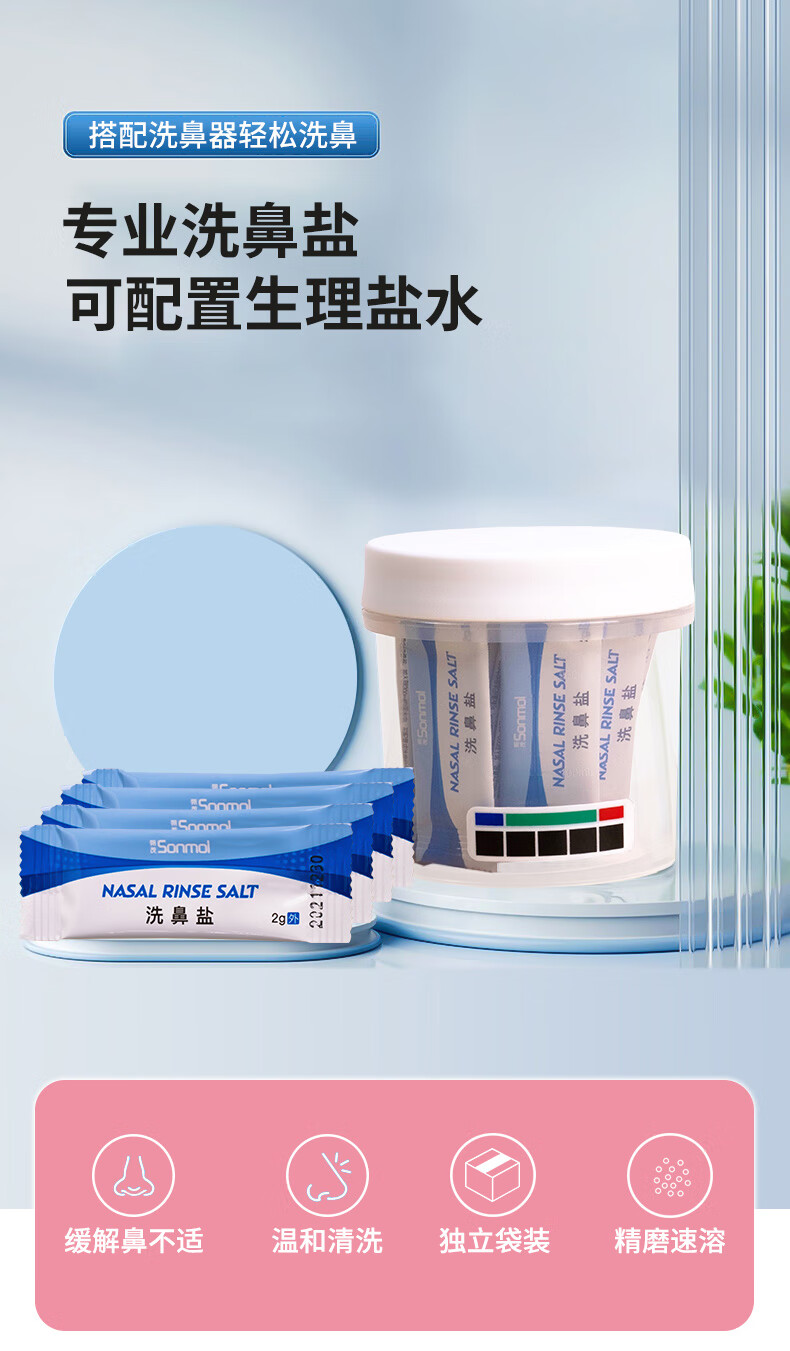朔茂(sonmol)洗鼻盐海盐成人儿童生理盐水专用无碘盐鼻腔清洁深海盐2g*50包