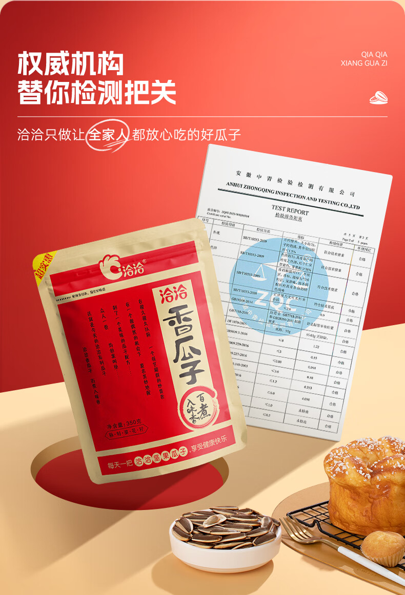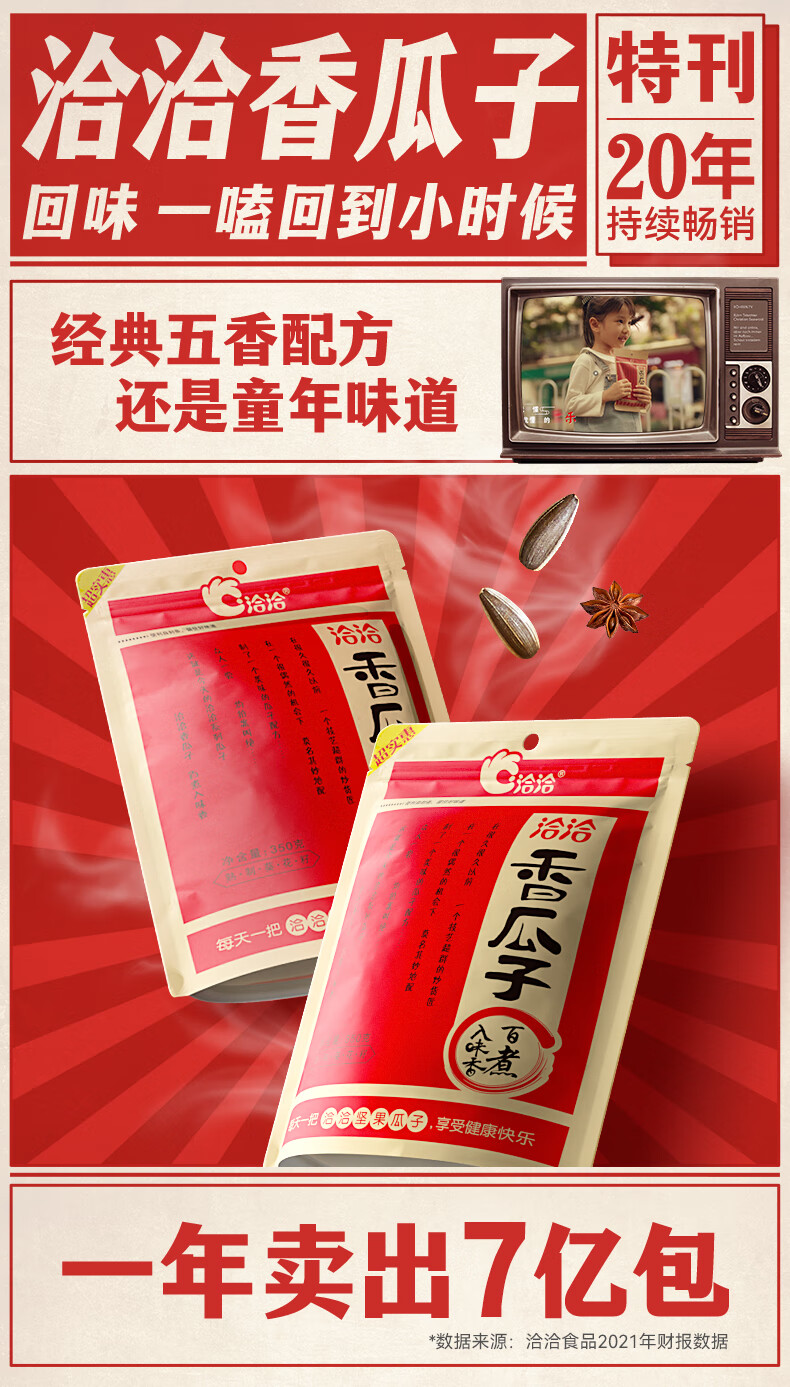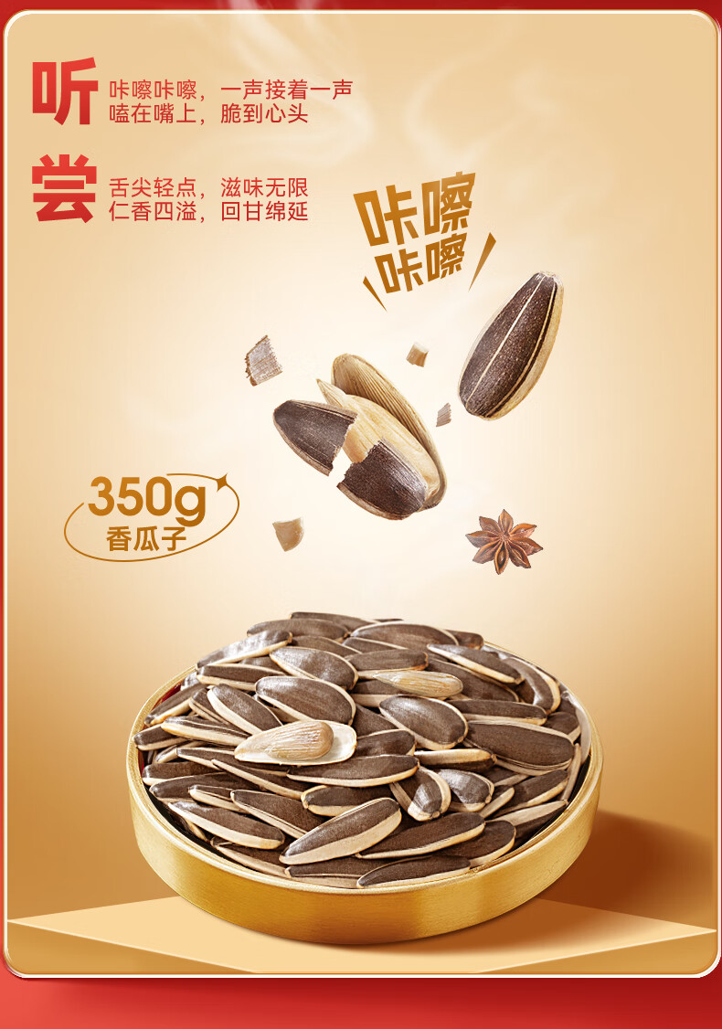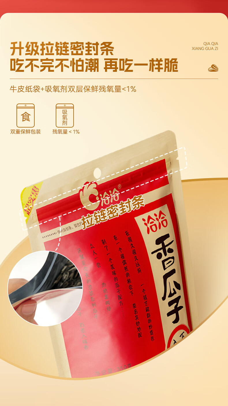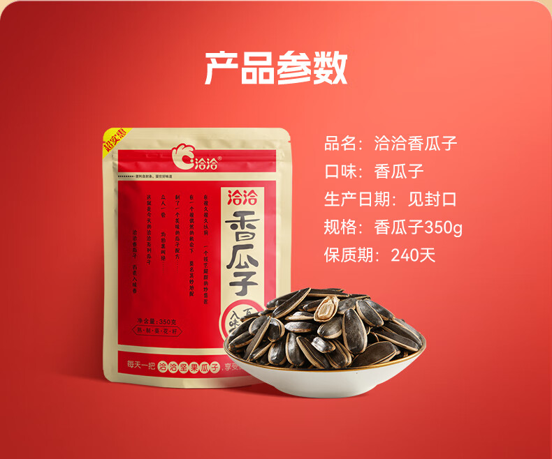 洽洽香瓜子350g坚果炒货经典红袋包装五香味葵花籽 宿舍休闲零食瓜子