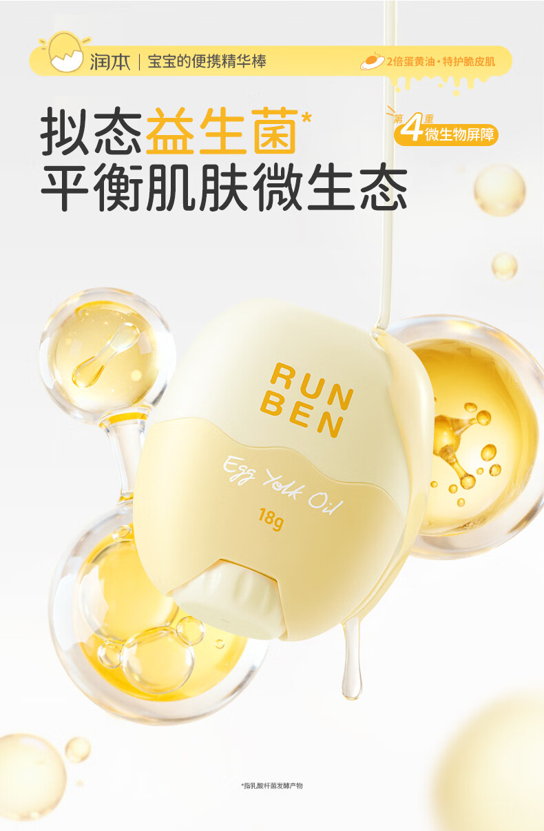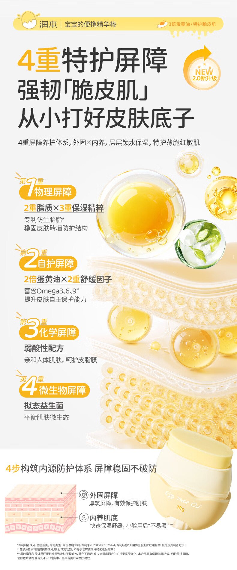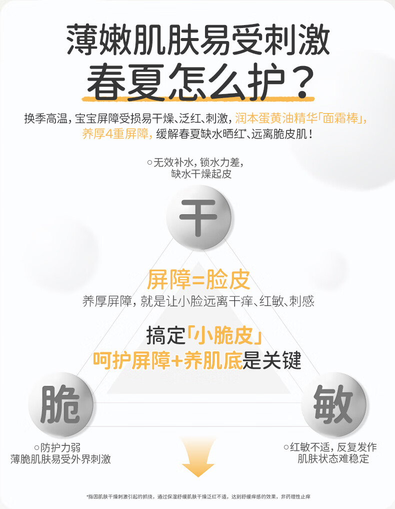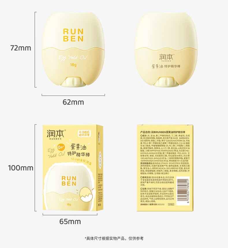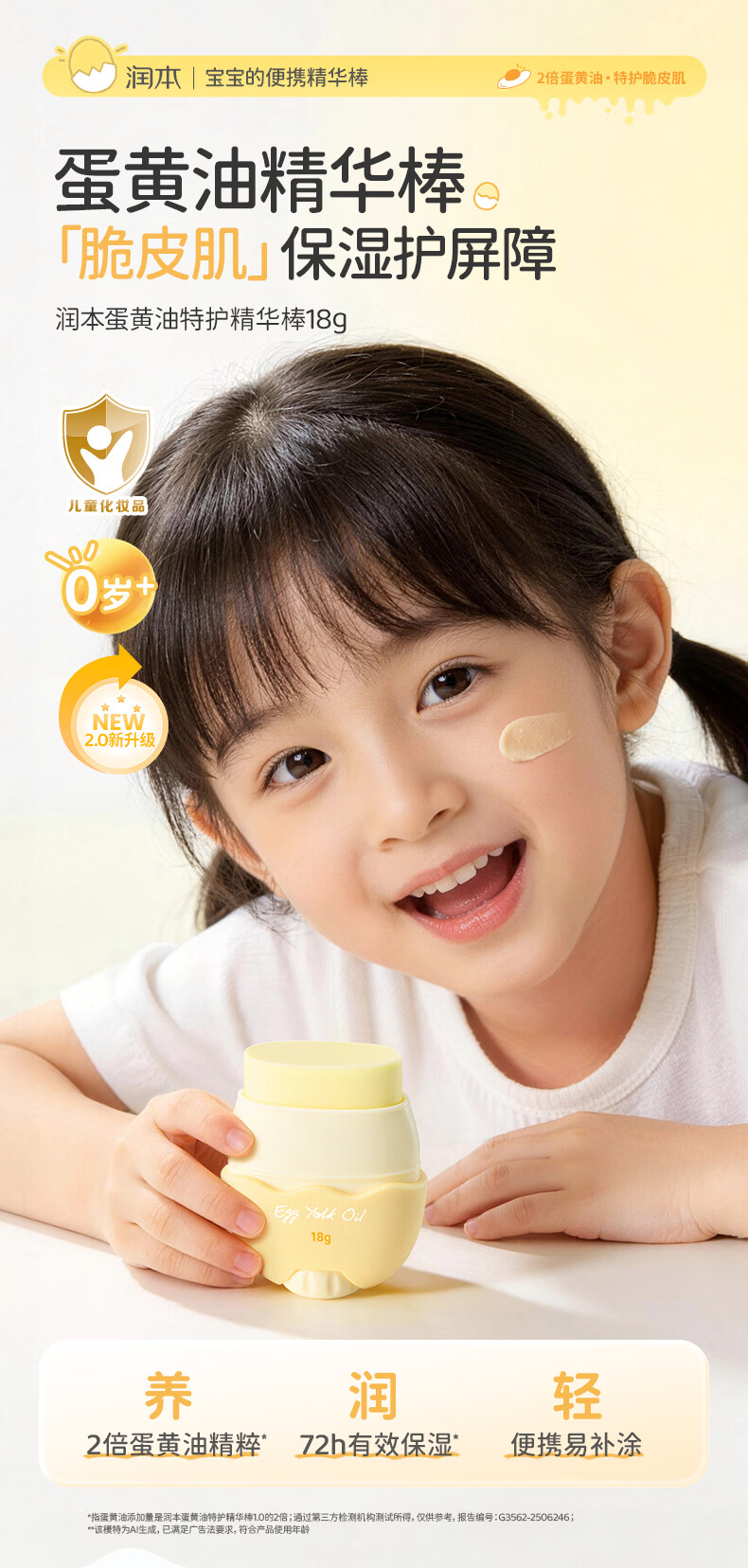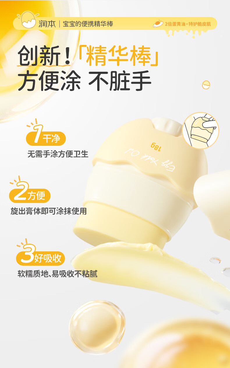 润本儿童面霜宝宝婴幼儿面霜保湿护肤擦脸油霜蛋黄油面霜棒18g