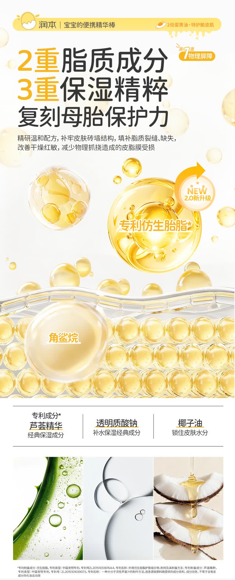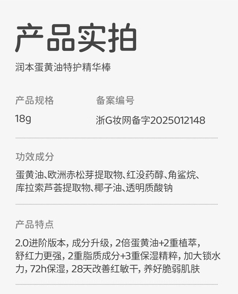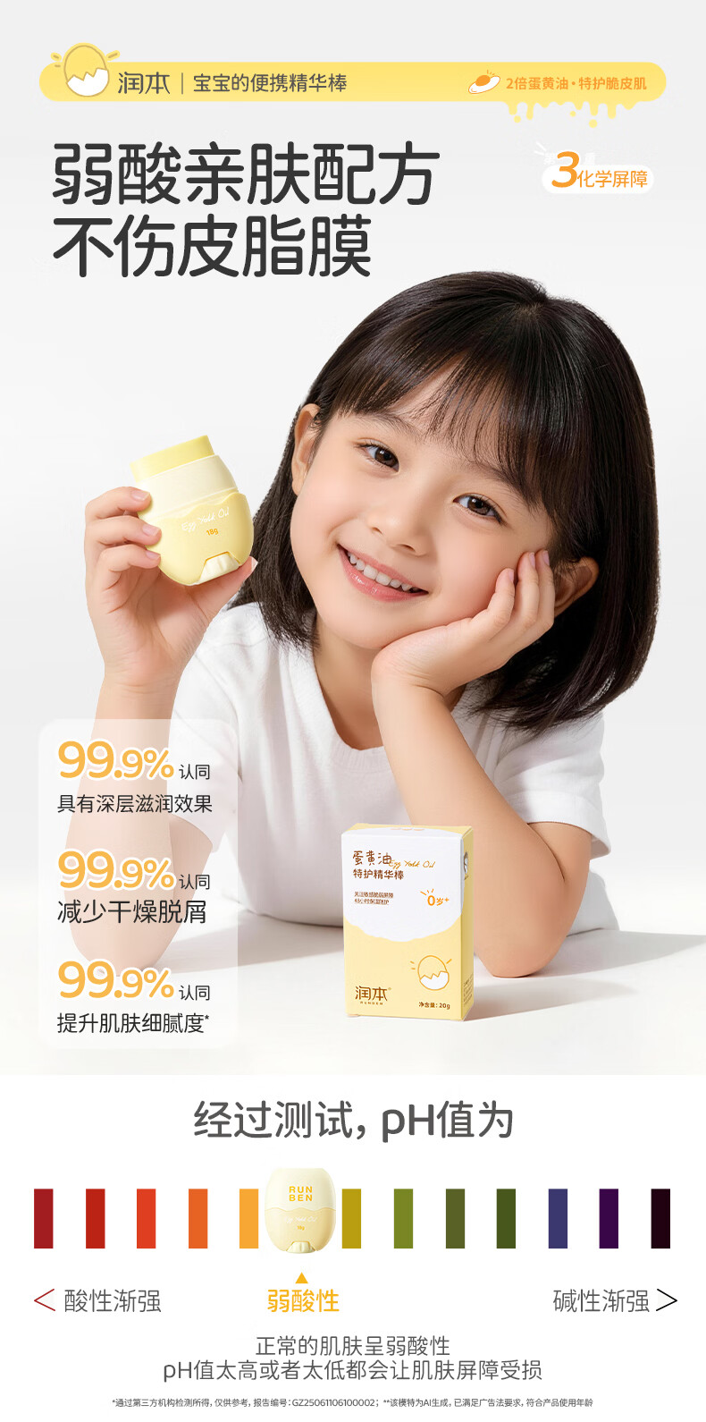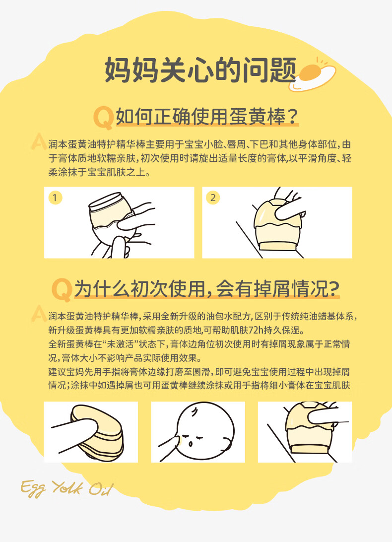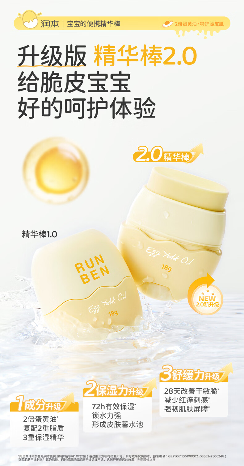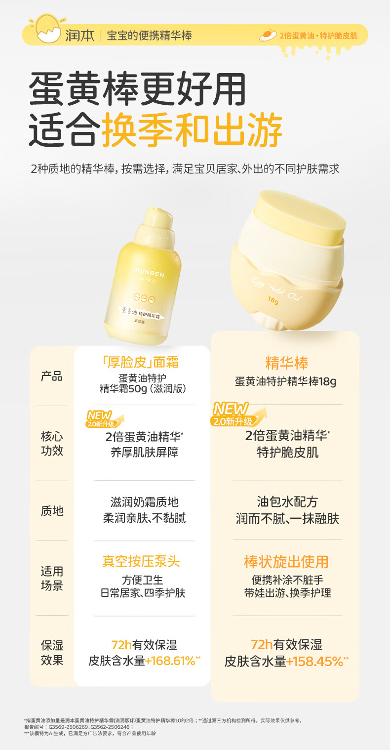 润本儿童面霜宝宝婴幼儿面霜保湿护肤擦脸油霜蛋黄油面霜棒18g