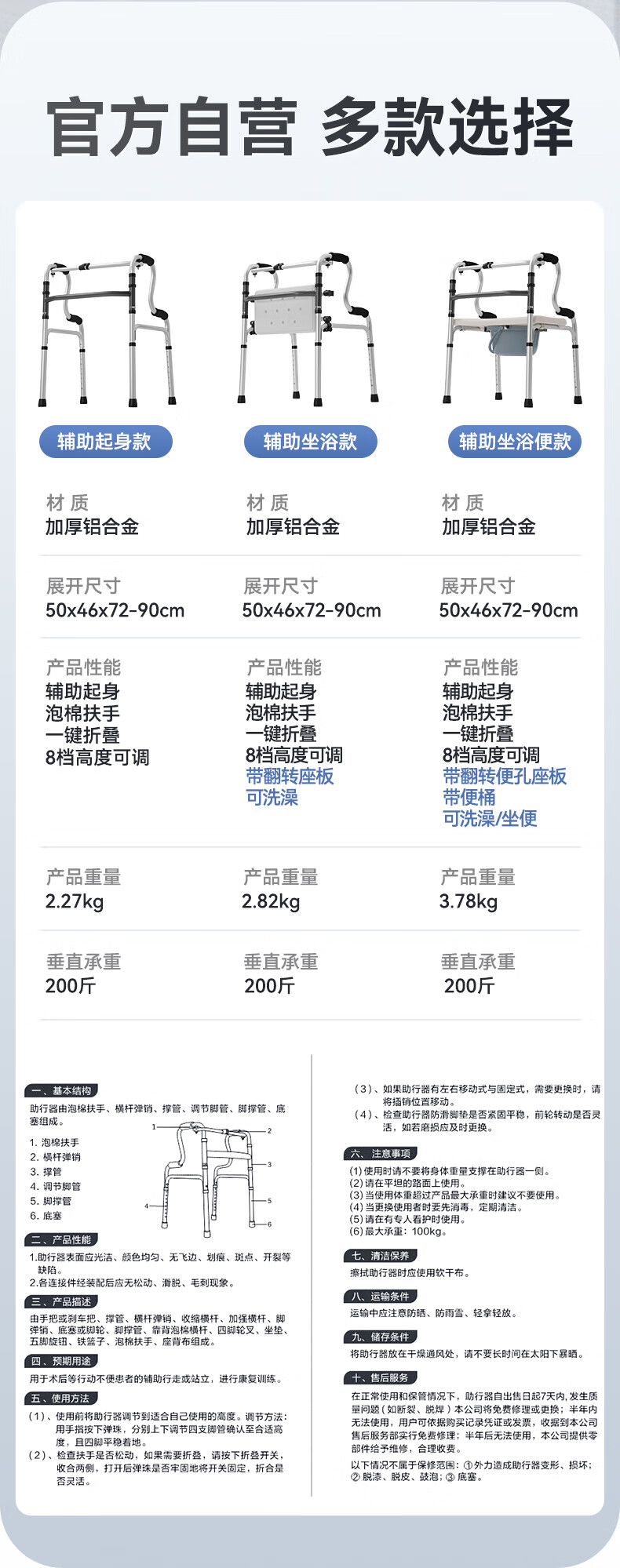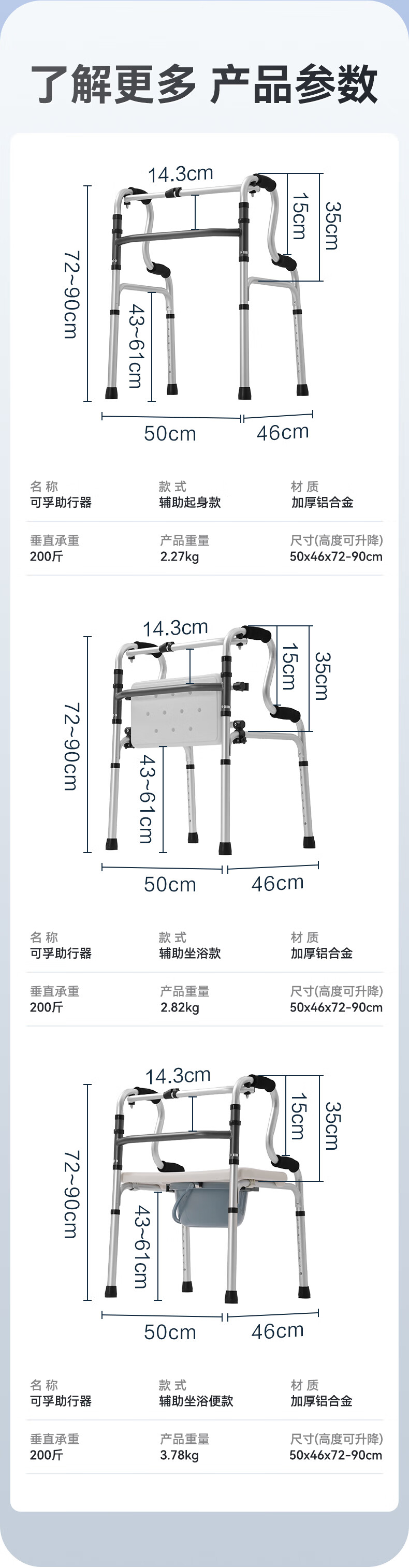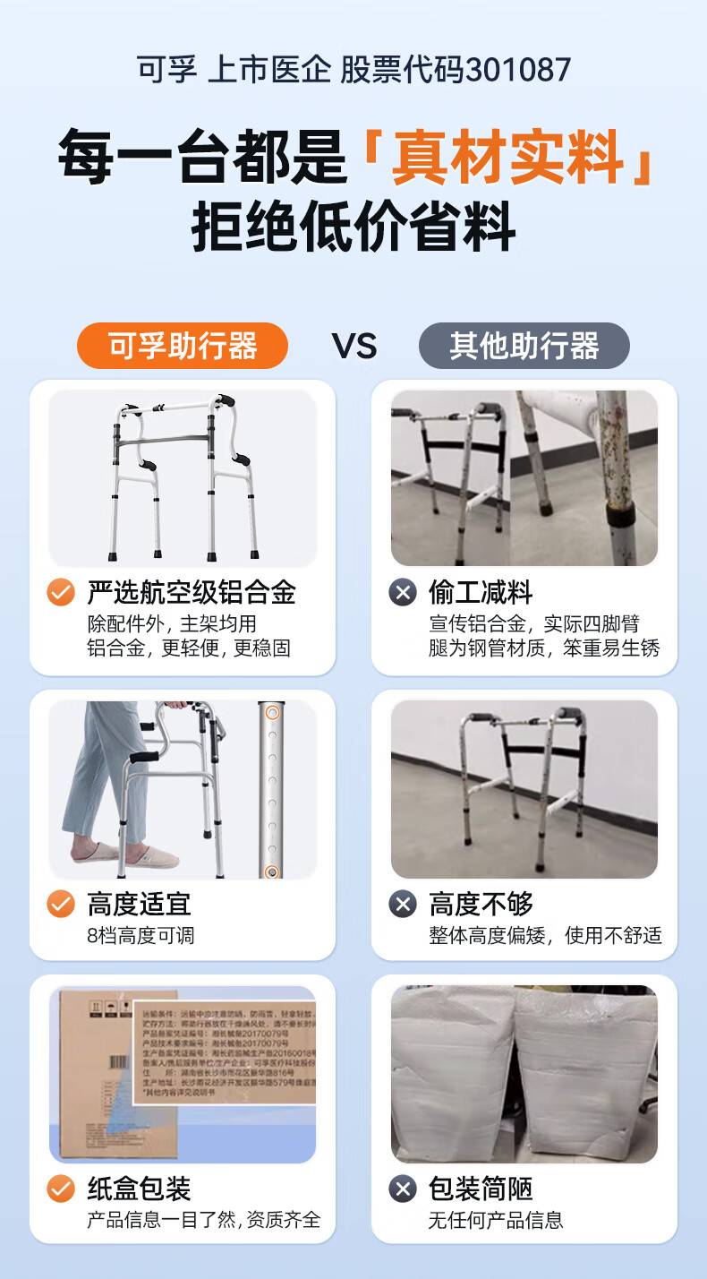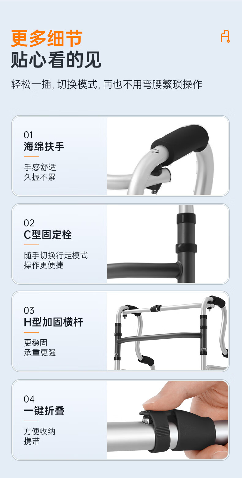 可孚 老人助行器助步器骨折走路辅助行走器车扶手架四角