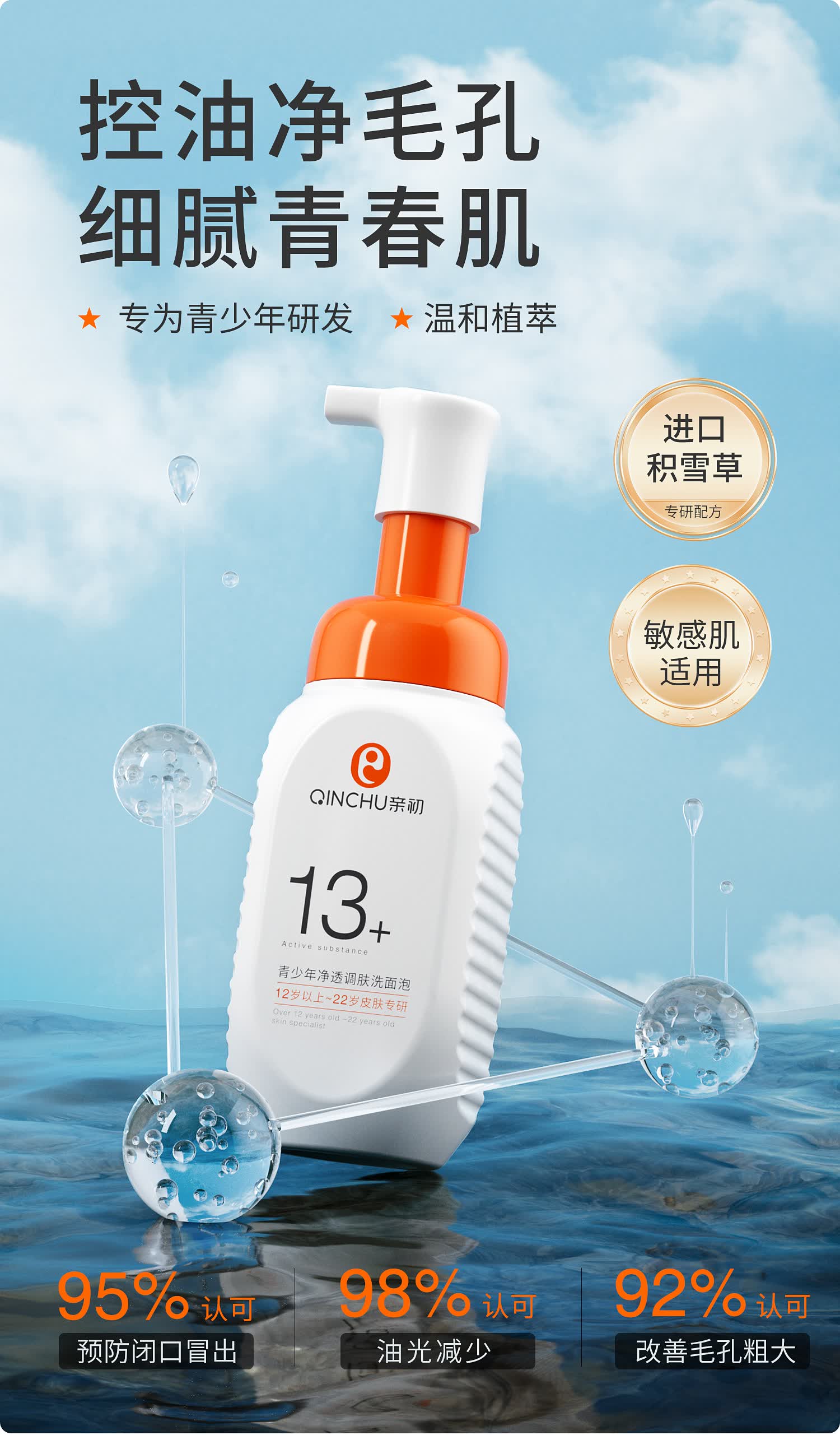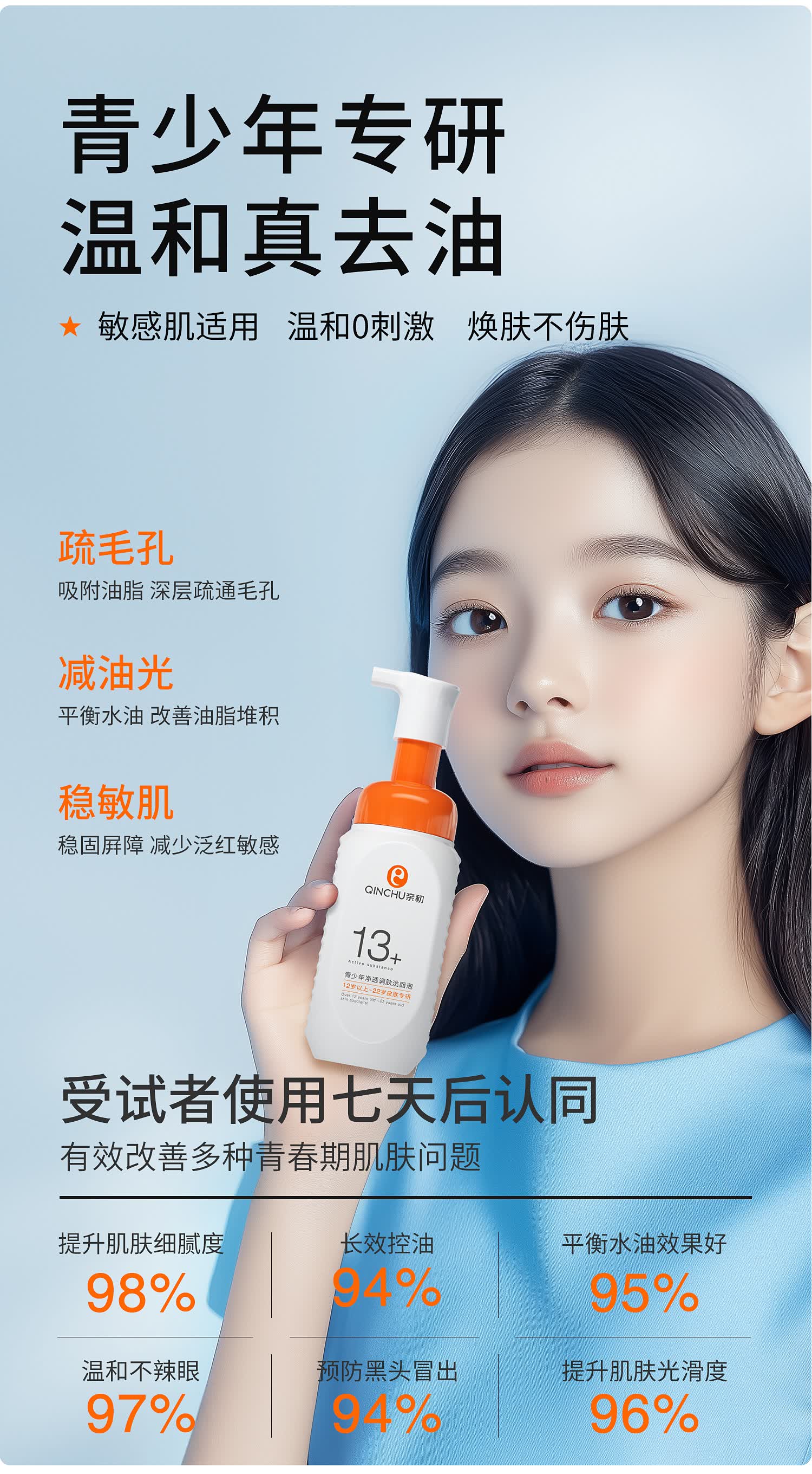 亲初青少年洗面奶12-18岁男孩女生控油祛痘青春期专用护肤品