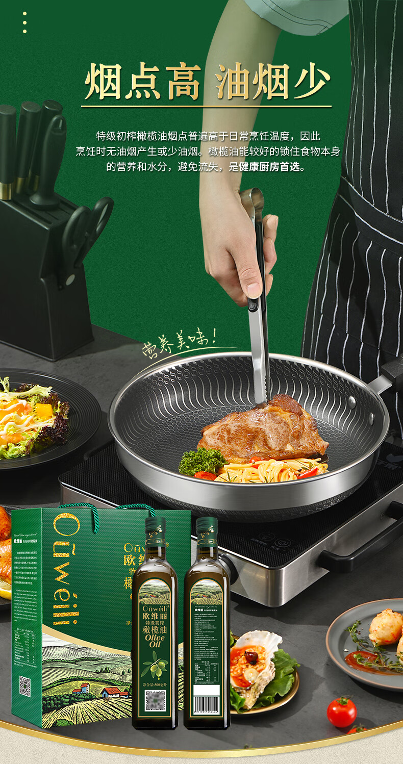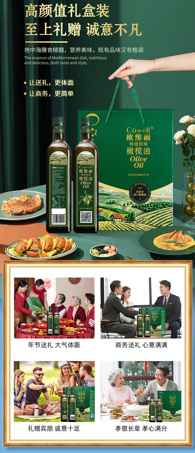 欧维丽(Ouweili)西班牙进口原油特级初榨孕妇儿童橄榄油礼盒500ml*2瓶 送礼福利