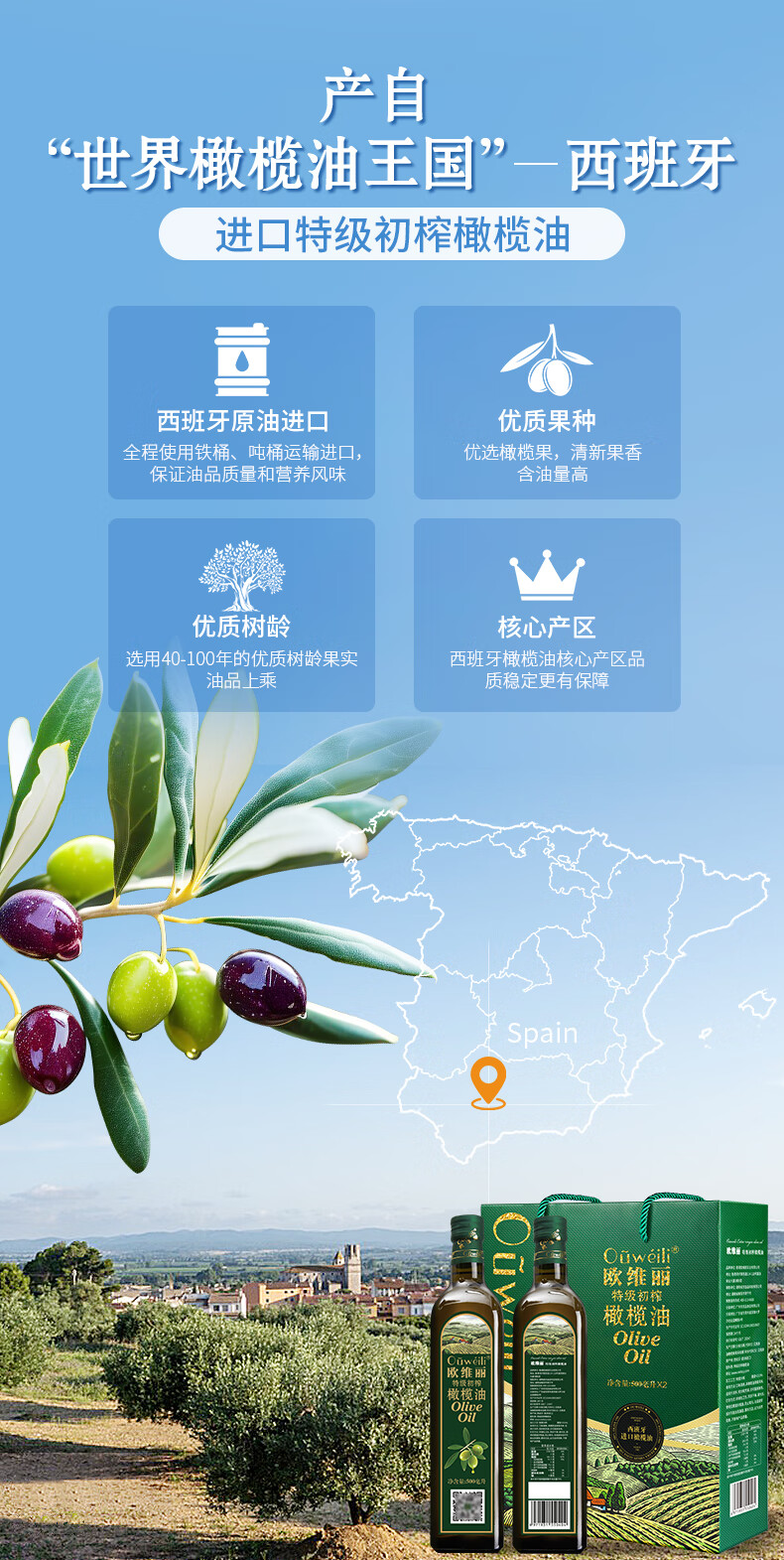 欧维丽(Ouweili)西班牙进口原油特级初榨孕妇儿童橄榄