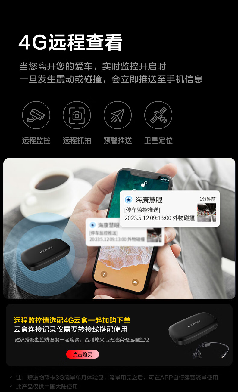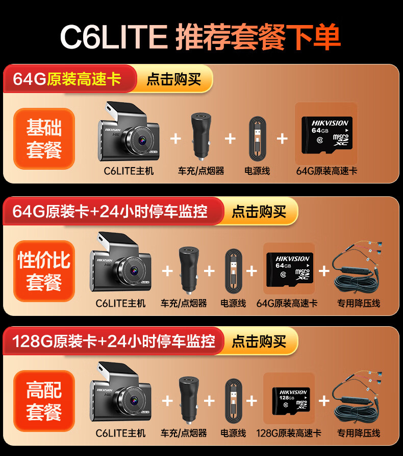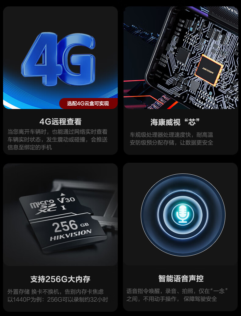 HIKVISION海康威视行车记录仪C6LITE 2K超高清星光夜视 超大广角4G远程监控