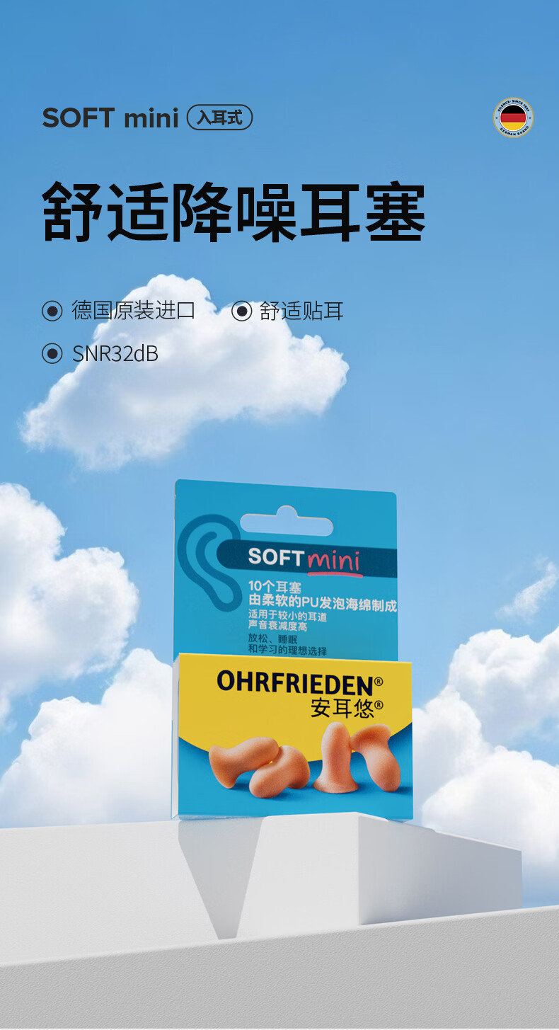 安耳悠 隔音耳塞 防噪音睡觉睡眠专用学习防呼噜 德国进
