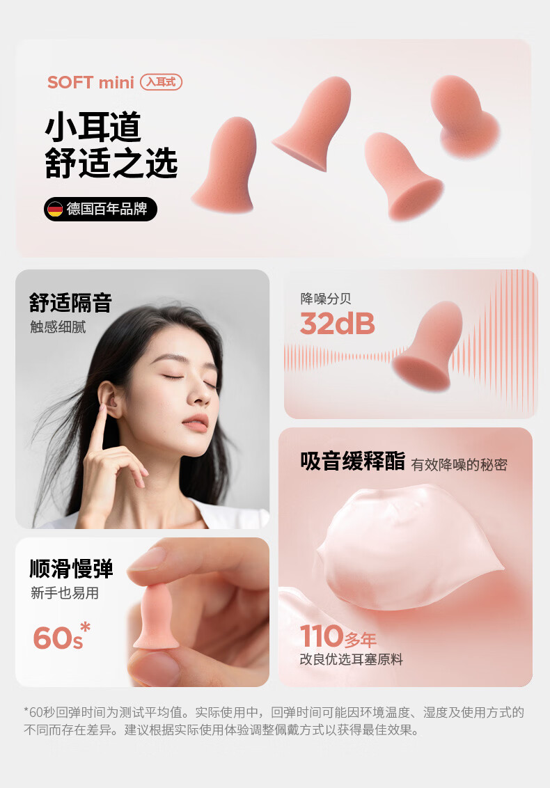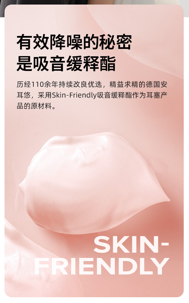 安耳悠 隔音耳塞 防噪音睡觉睡眠专用学习防呼噜 德国进口 肤色小号 5副