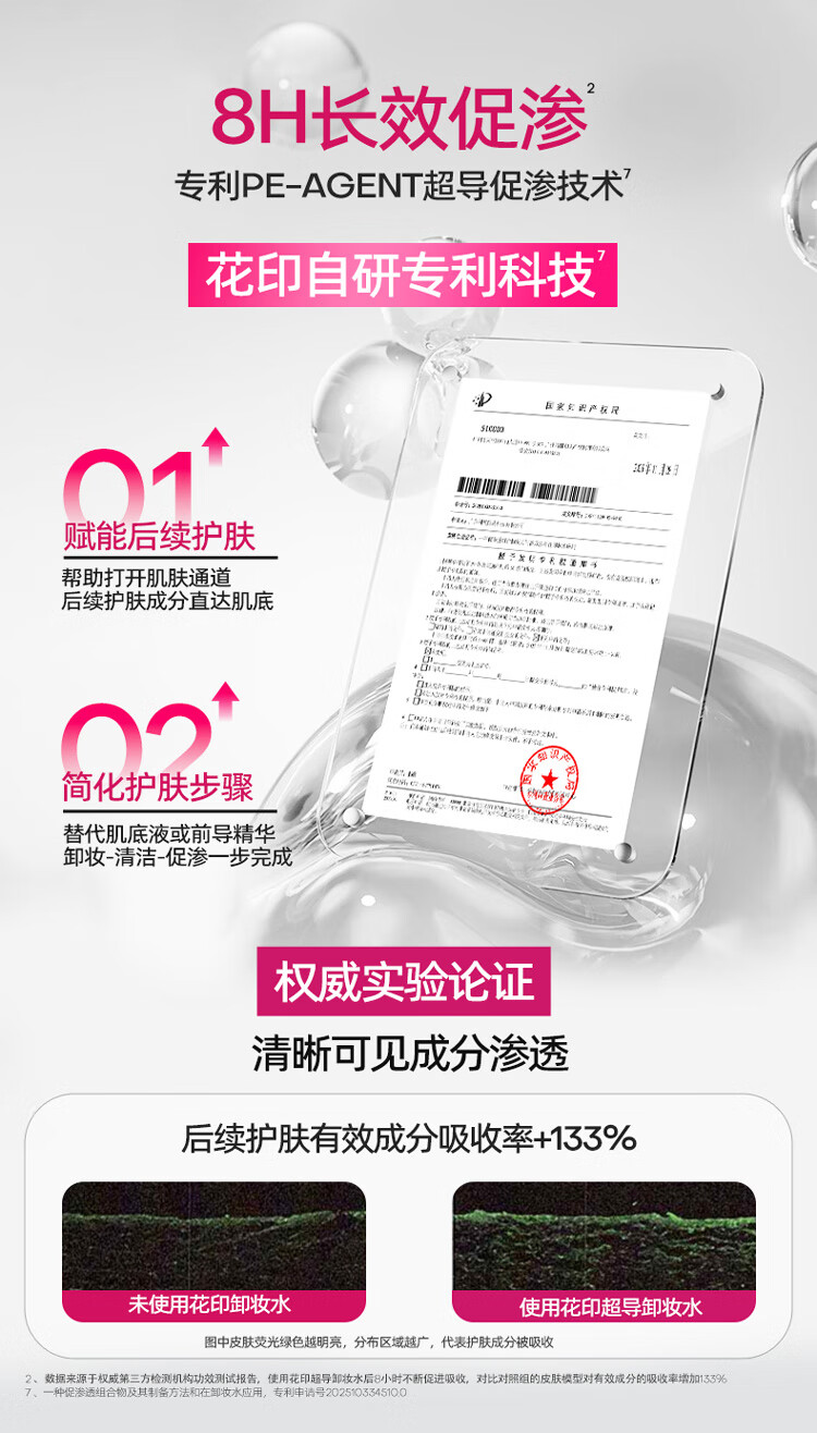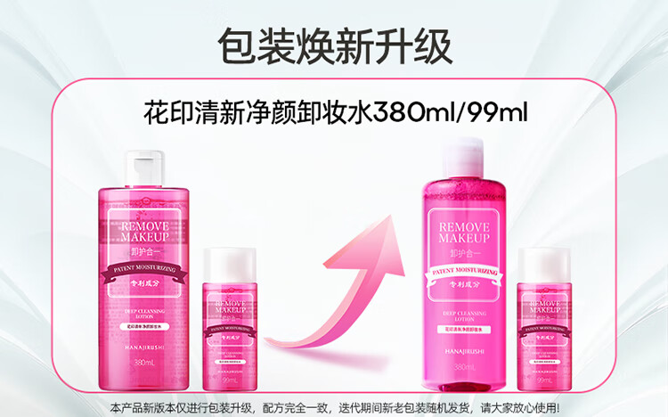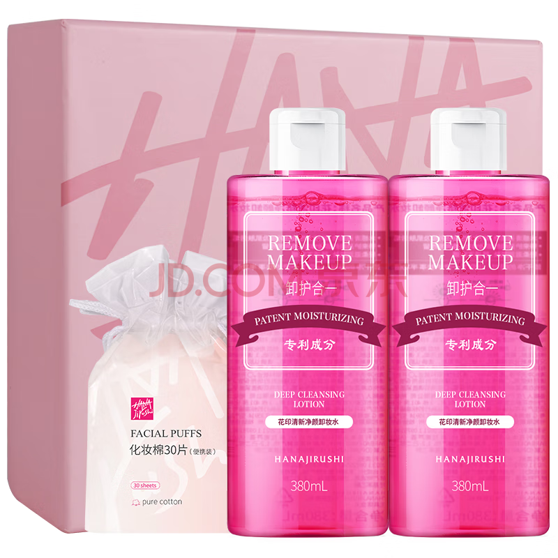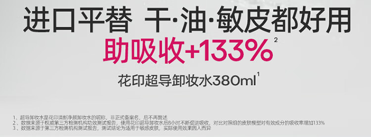 花印清新净颜卸妆水(超导款) 380ml*2+化妆棉 眼唇卸妆敏感肌男女新年