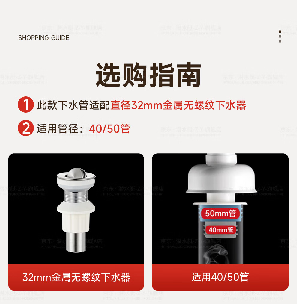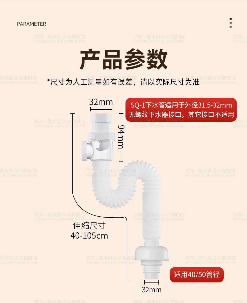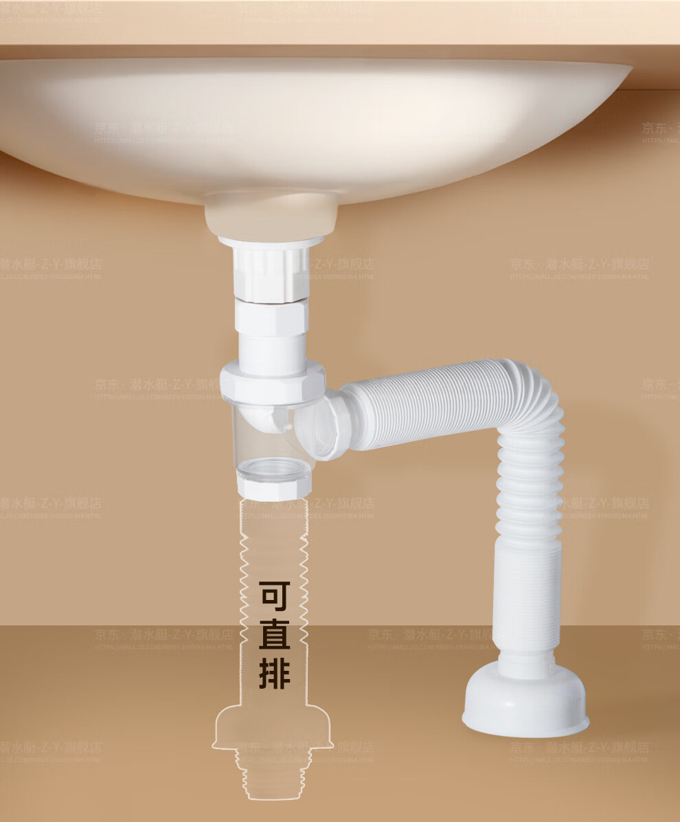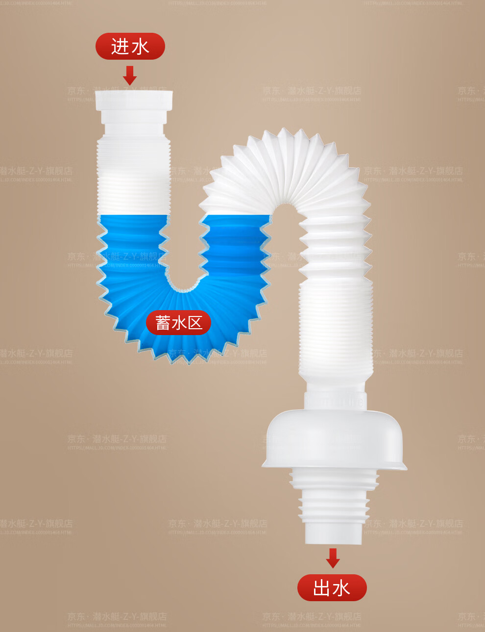 潜水艇(Submarine)SQ-1面盆洗手池ABS防臭下水管 S弯伸缩下水管防虫防臭