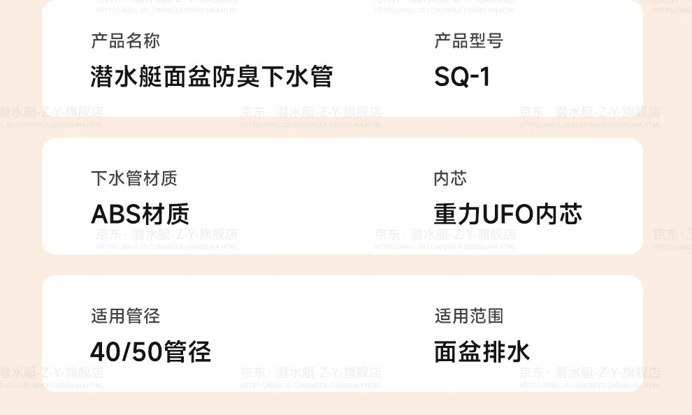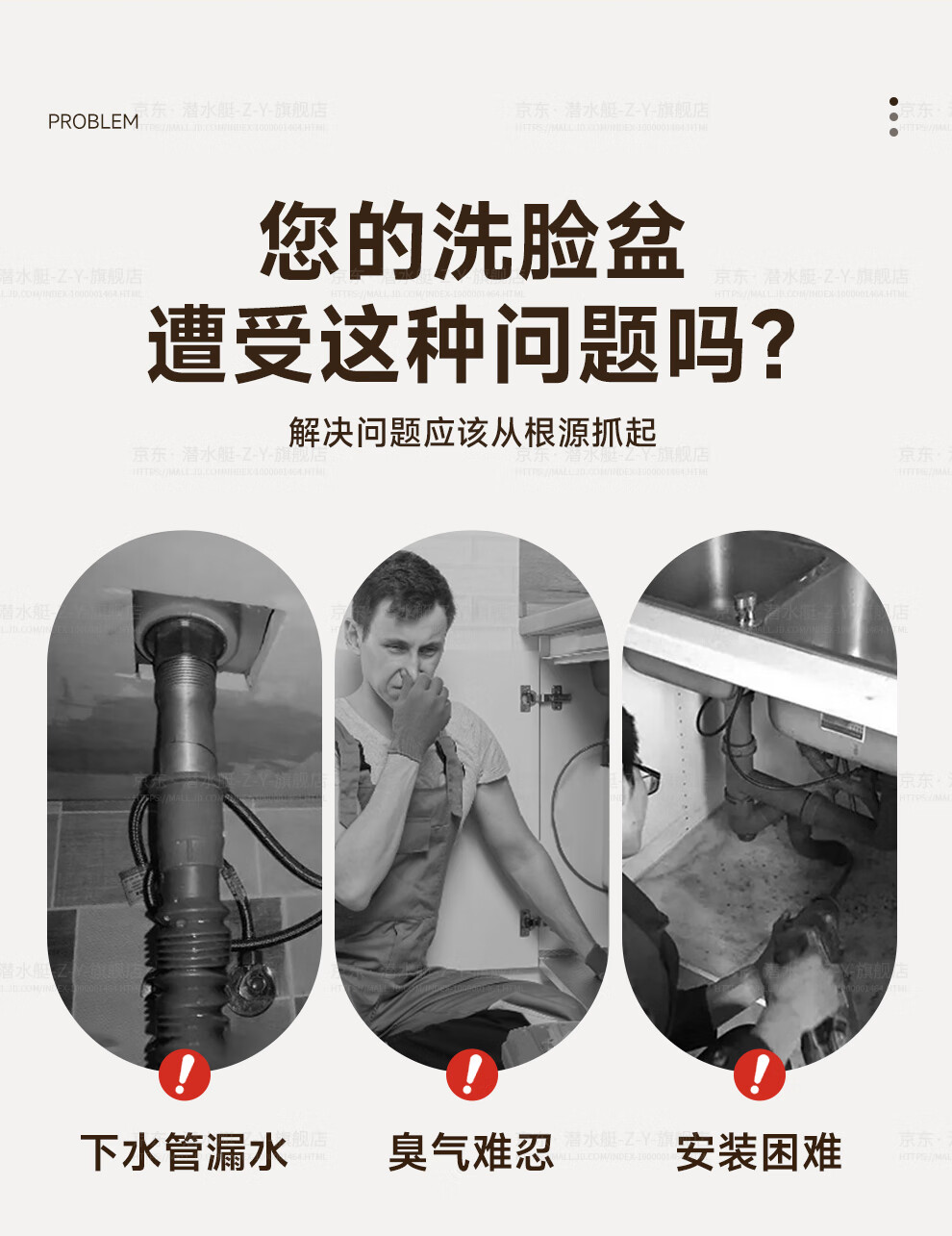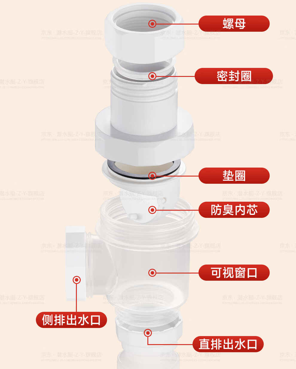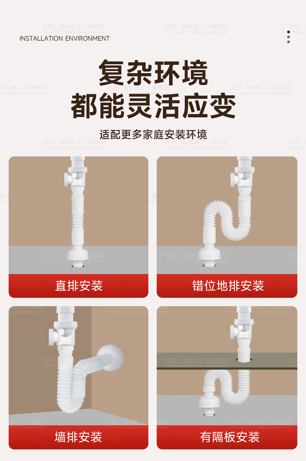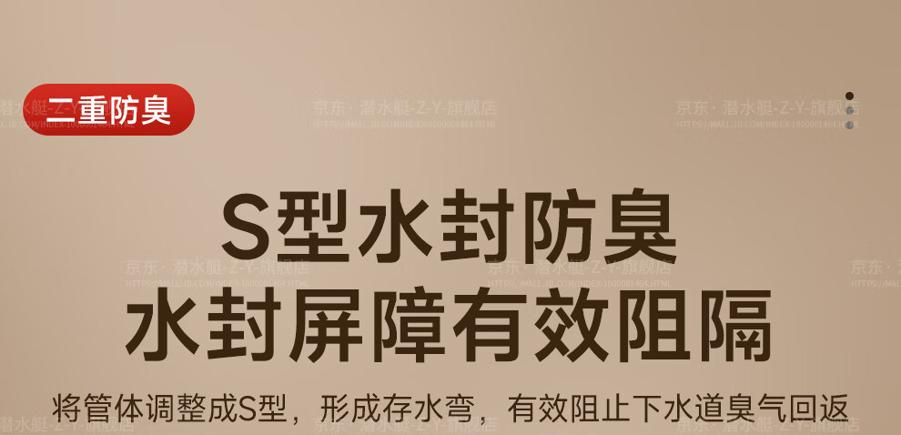 潜水艇(Submarine)SQ-1面盆洗手池ABS防臭下水管 S弯伸缩下水管防虫防臭