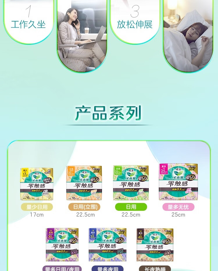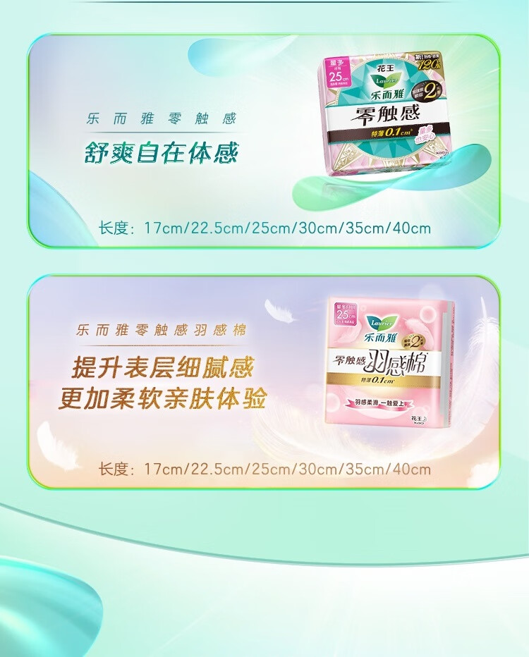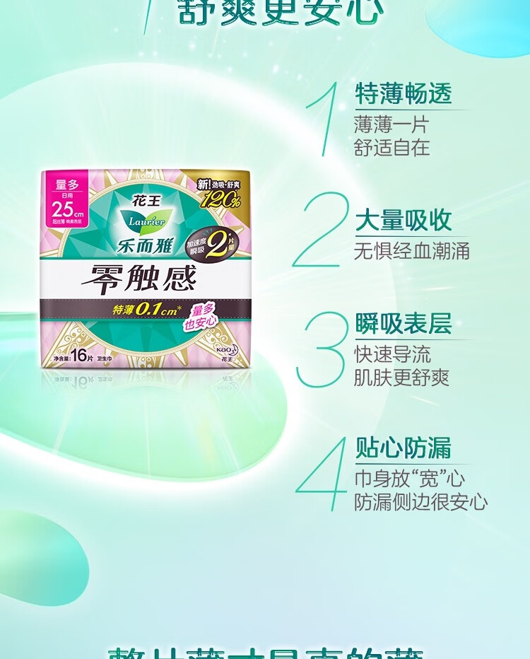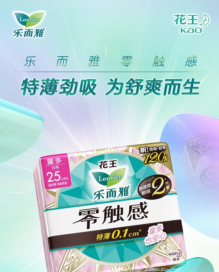 乐而雅花王零触感特薄透气特长日用护翼型卫生巾25cm16片姨妈巾