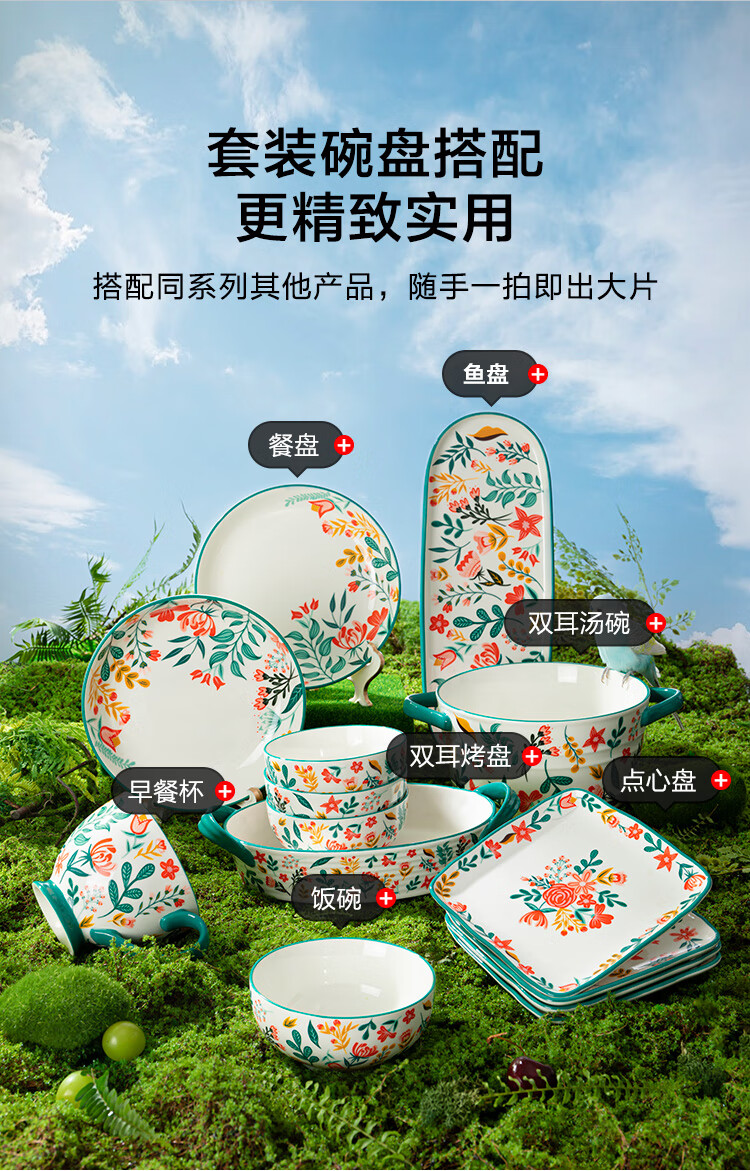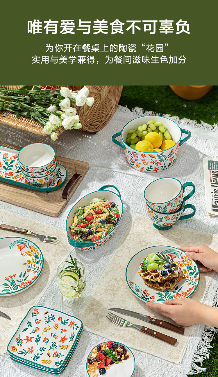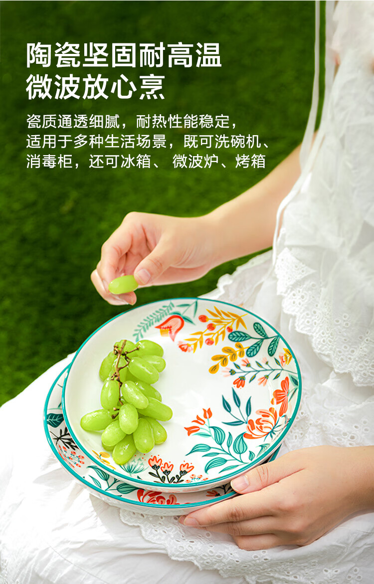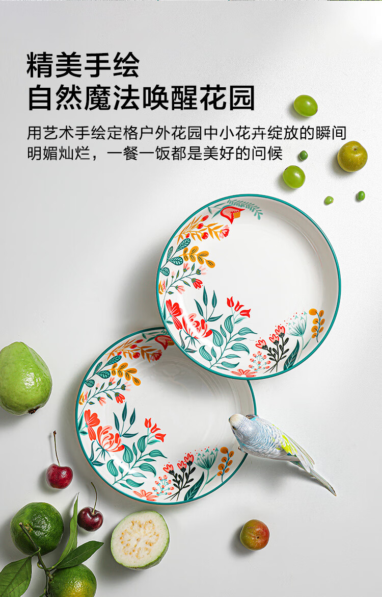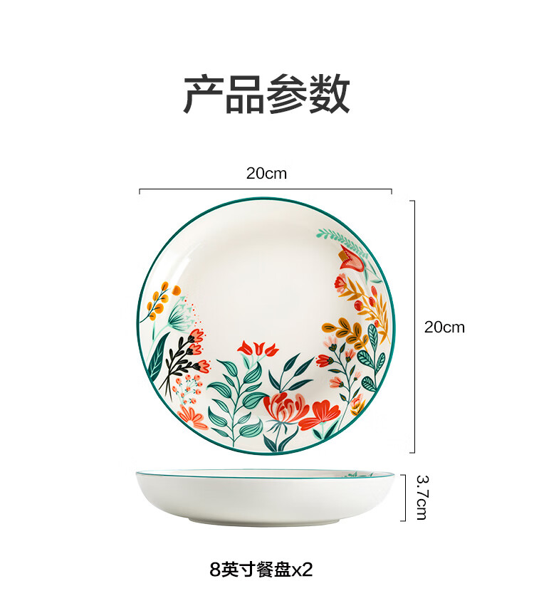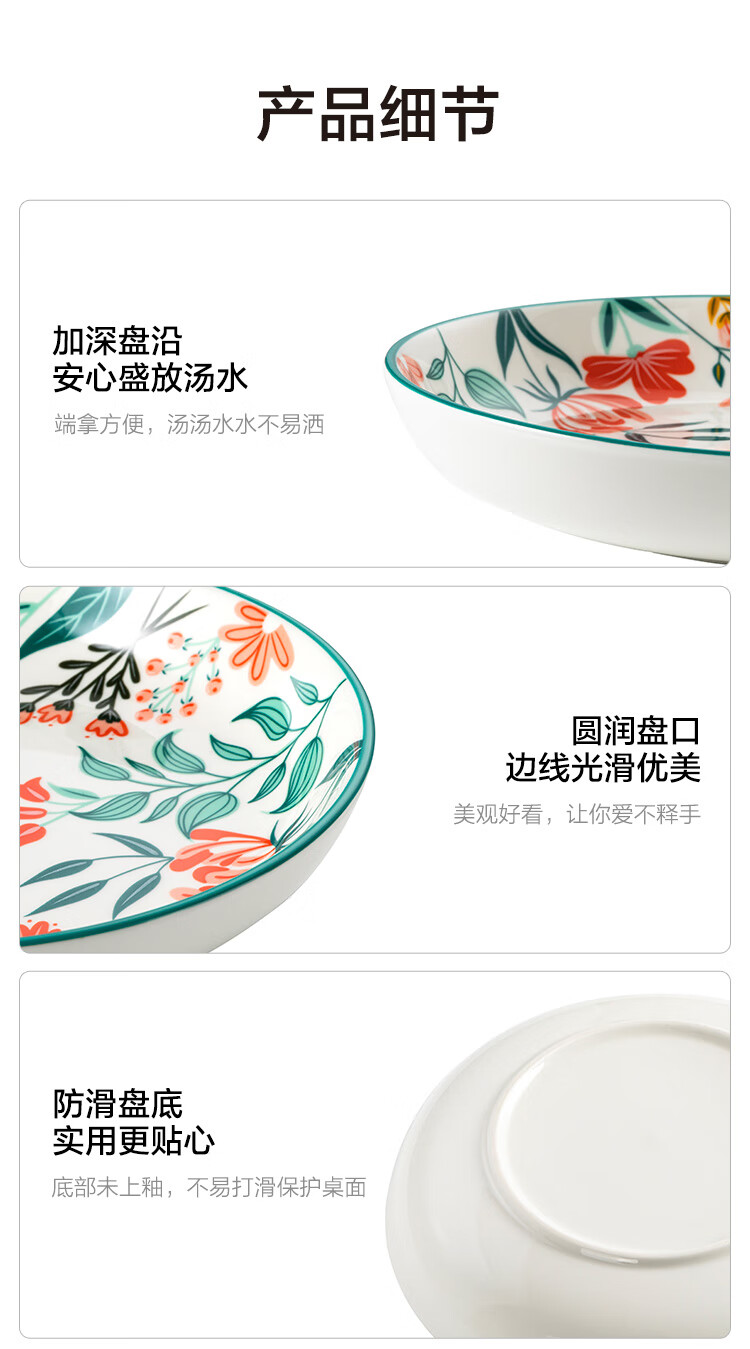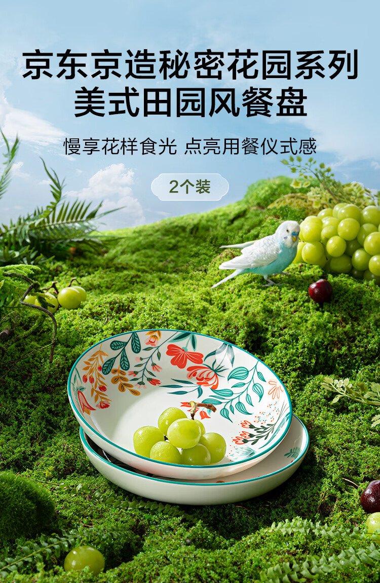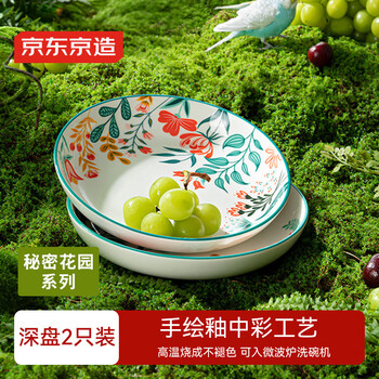 京造美式盘 餐具套装盘子碟子乔迁之喜陶瓷汤盘 秘密花园 深盘8英寸*2