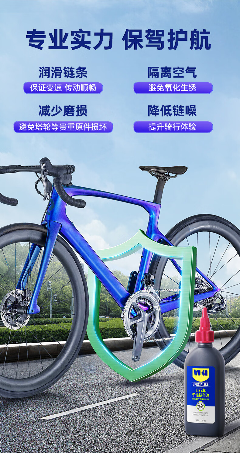 WD-40自行车链条油干性山地公路折叠防锈润滑剂飞轮牙盘塔轮保养120ml