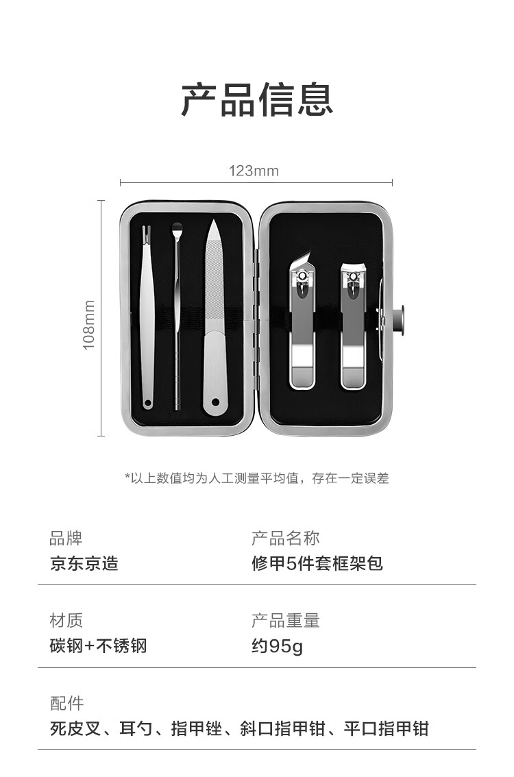 京造 锋刃系列 指甲刀套装指甲剪钳工具包甲沟炎亮甲锉德国工艺5件