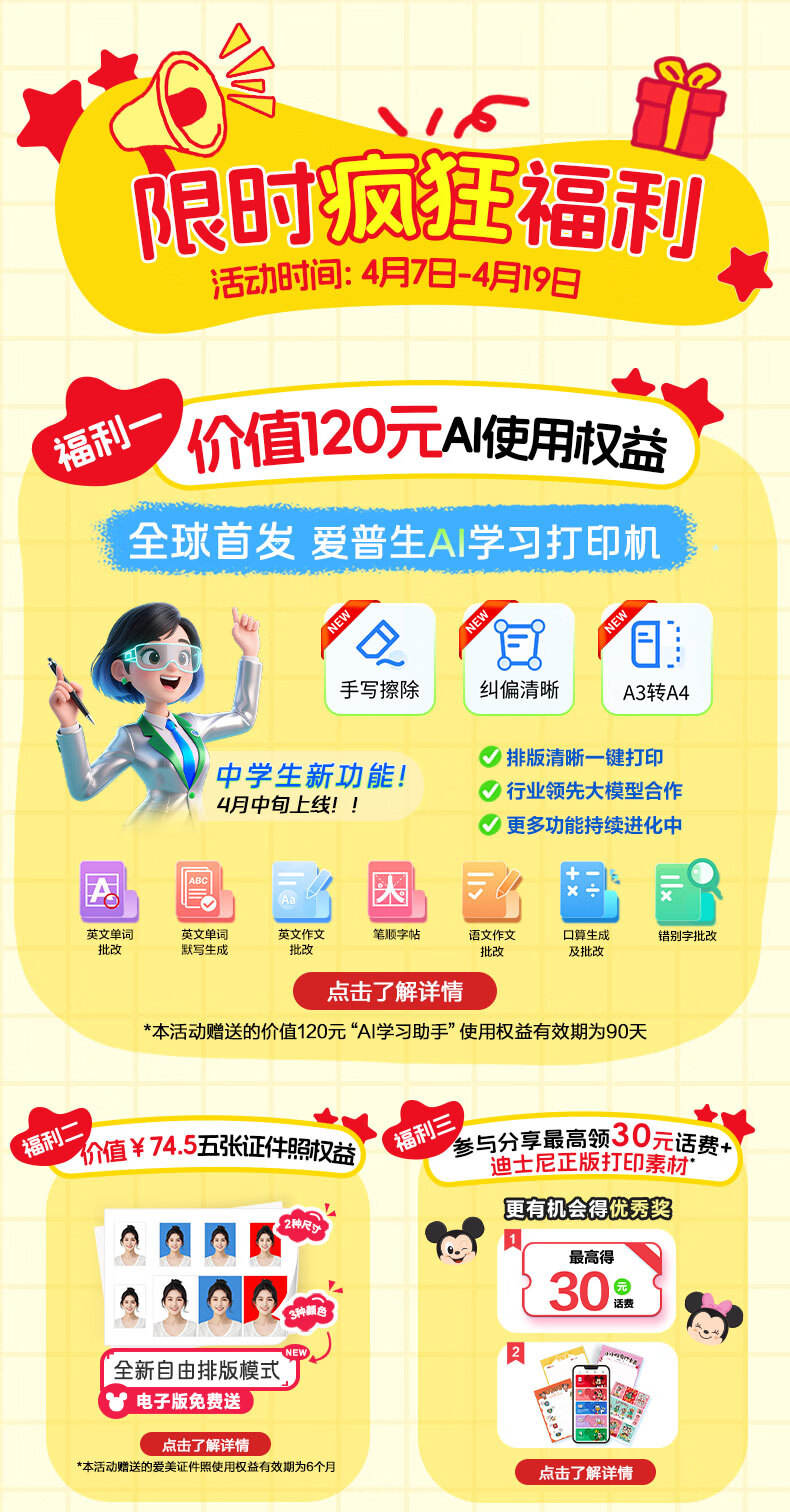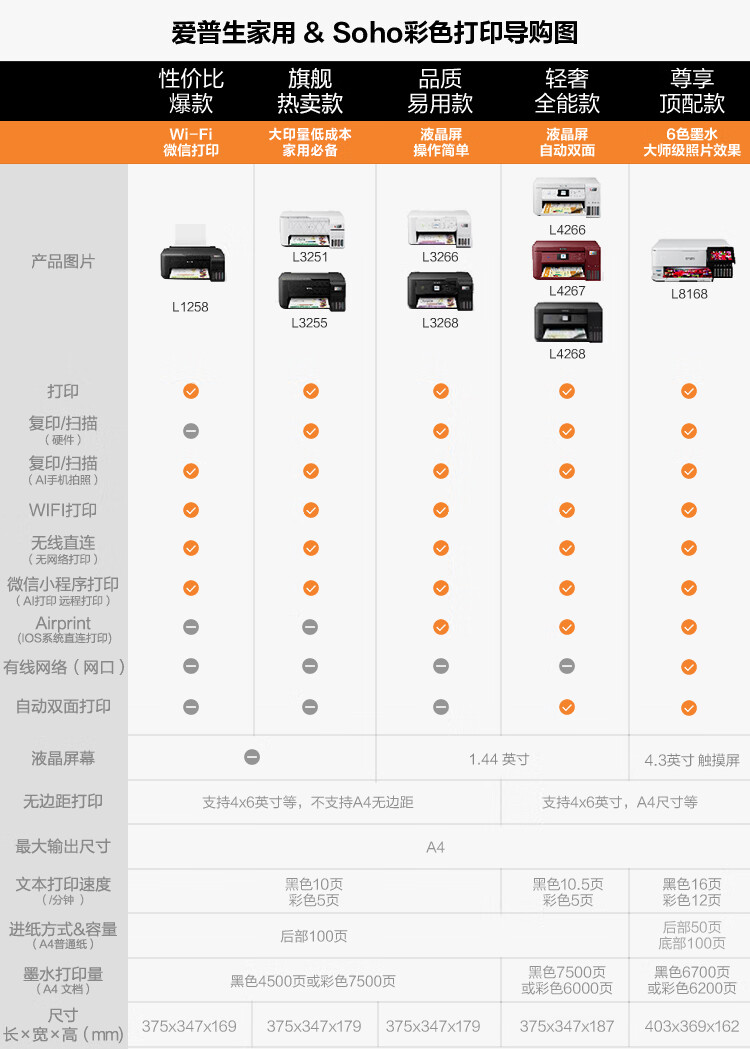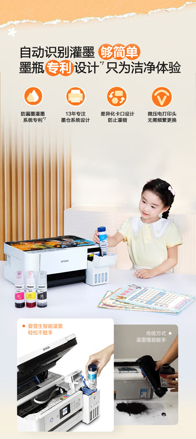 爱普生(EPSON)墨仓式 L3255彩色打印机 微信打印/无线连接 家用打印优选 AI学习打印机(打印、复印、扫描)