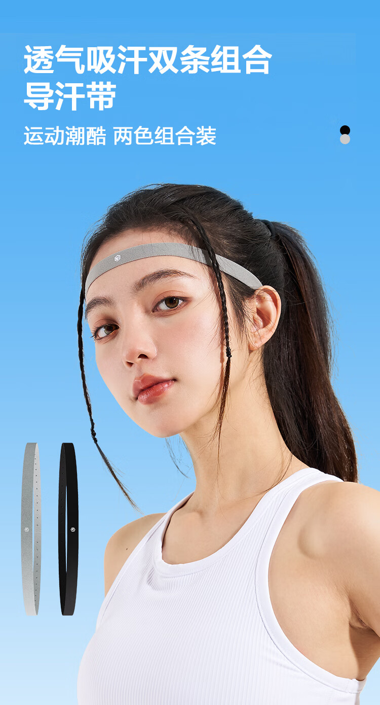 京造 运动发带导汗带【2条装】 男女吸汗头带健身头巾篮球跑步头箍