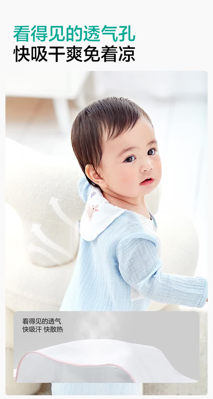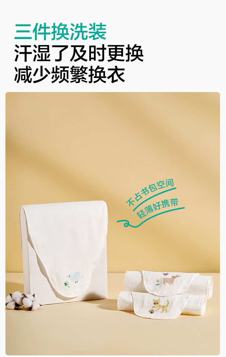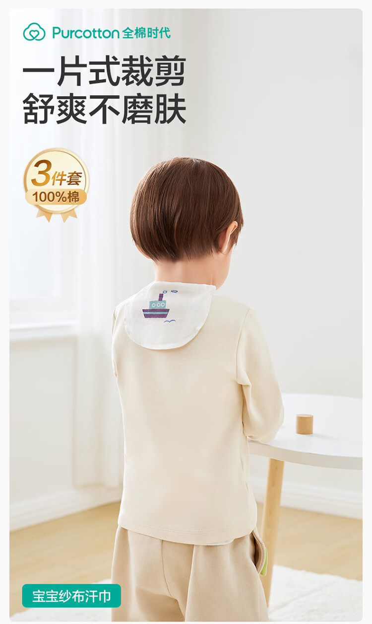 全棉时代婴儿隔汗巾纱布吸汗儿童开学幼儿园宝宝纯棉垫背船锚轮船帆船3条