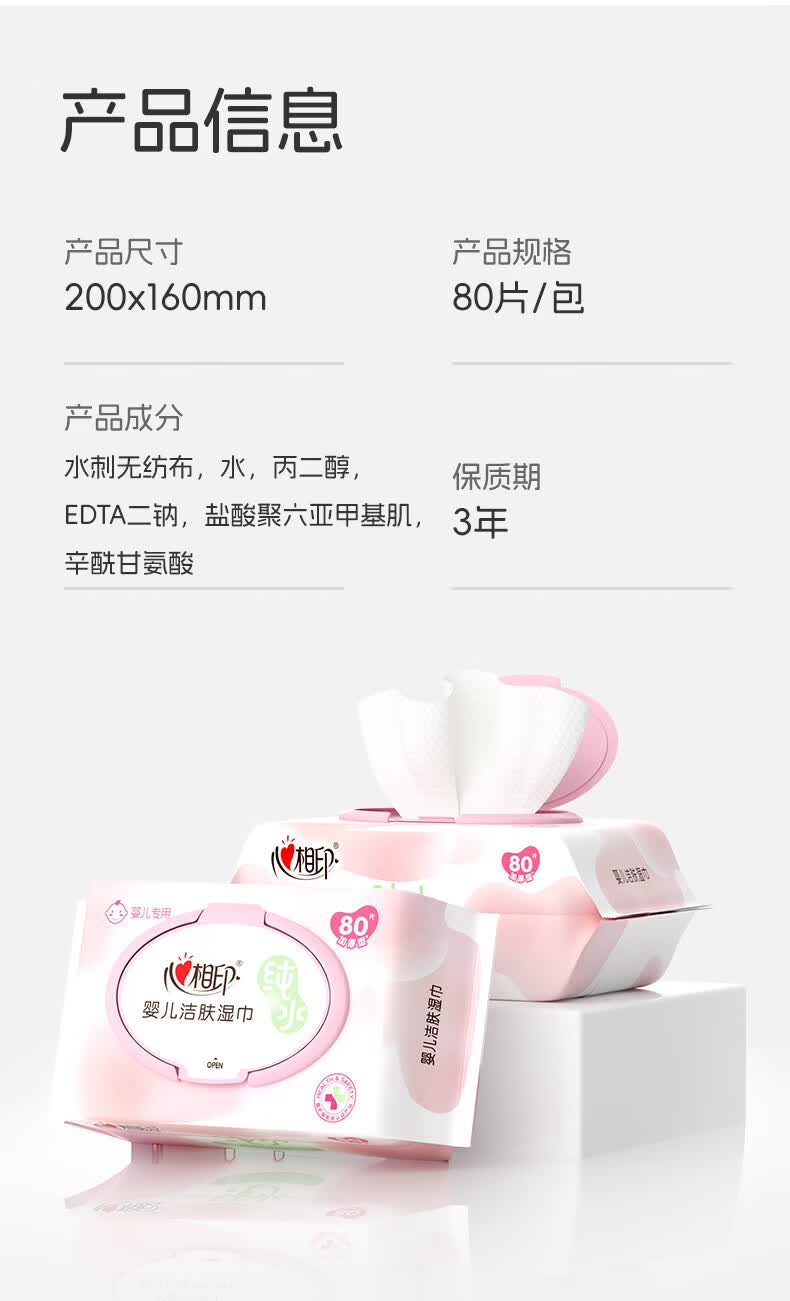 心相印婴儿湿巾 80片*1包 宝宝手口纯水湿纸巾 温和亲肤加厚不含酒精