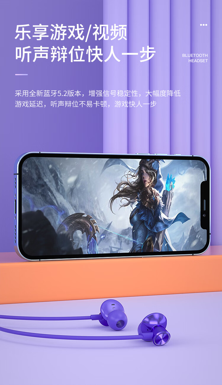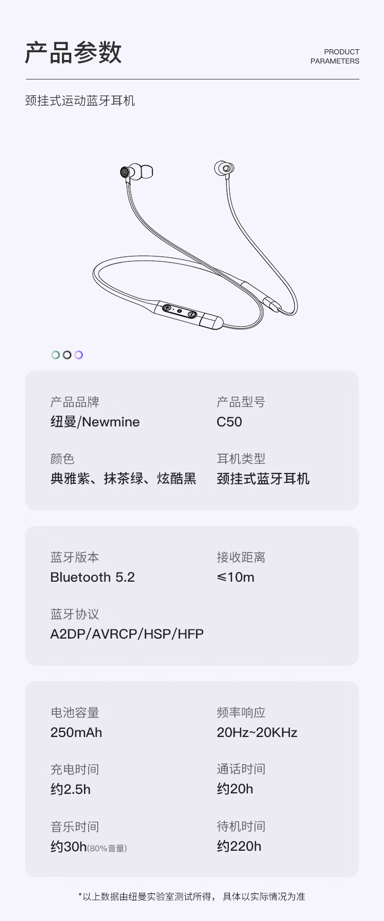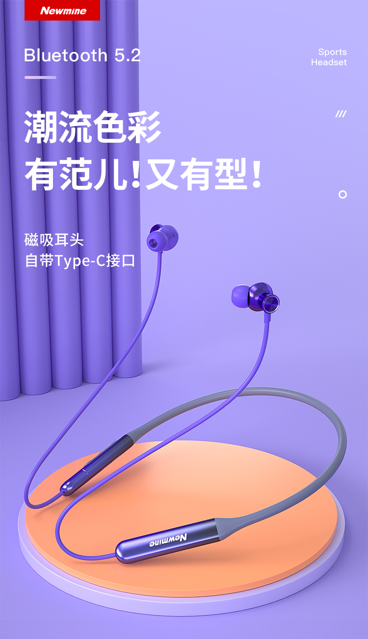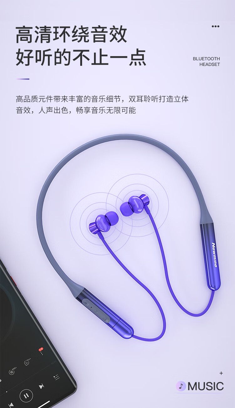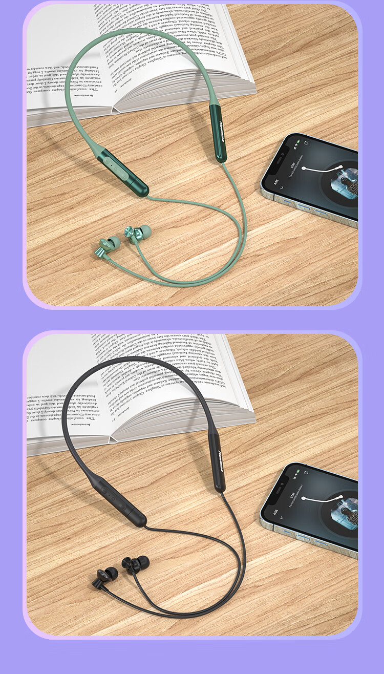 纽曼C50蓝牙耳机挂脖式无线运动磁吸颈挂式大容量待机超长续航跑步防汗游戏通话适用苹果小米 绿色