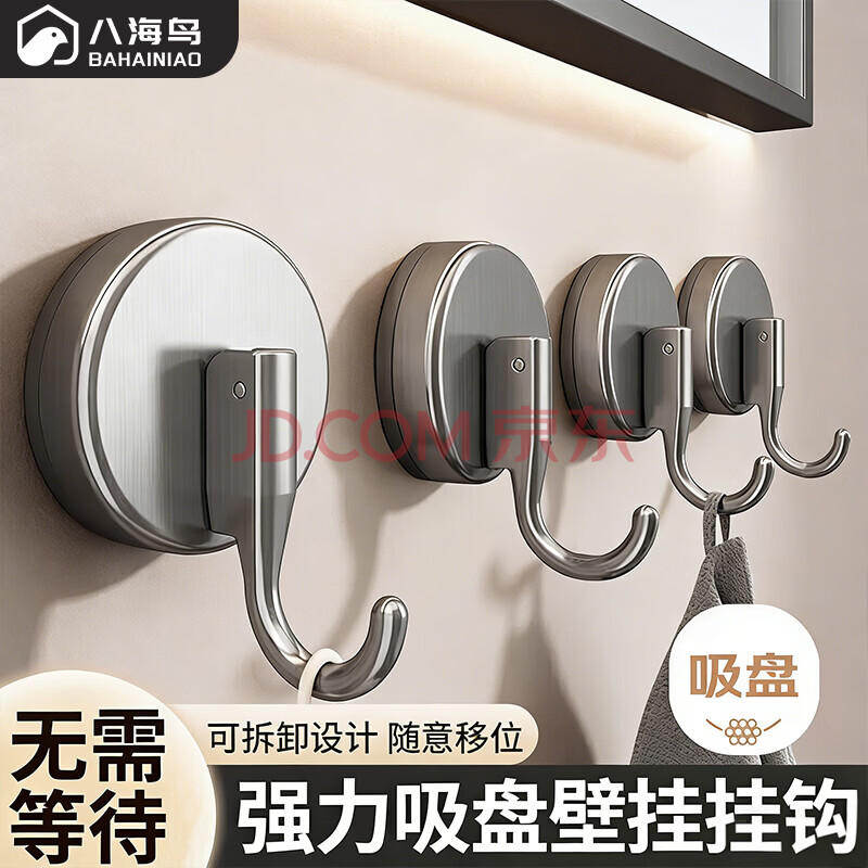 八海鸟吸盘挂钩免打孔真空强力无痕挂钩厨房卫生间浴室门后毛巾钩