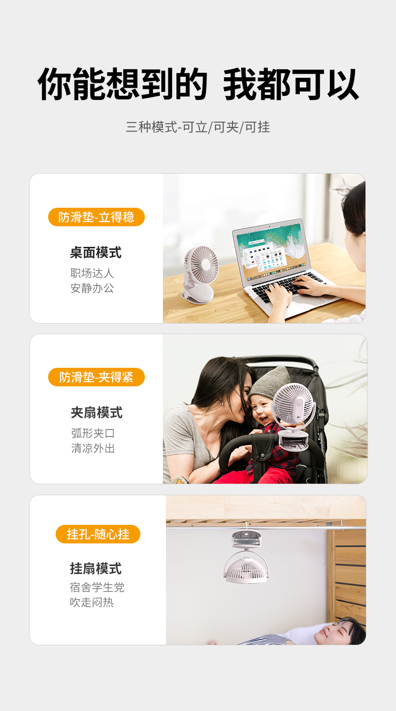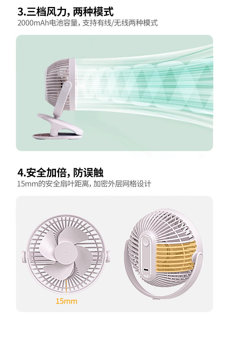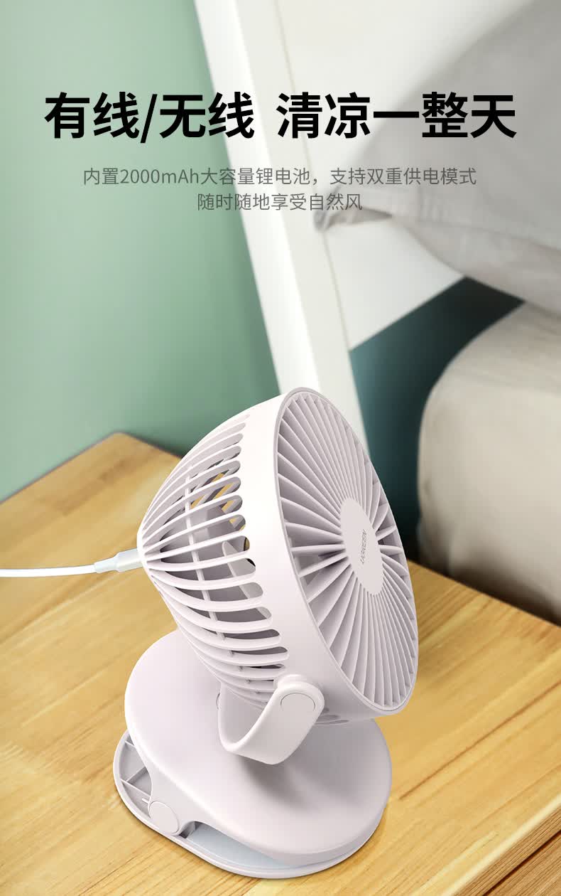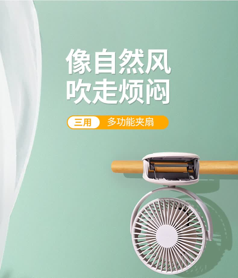 【三用夹扇】无线供电/大风力