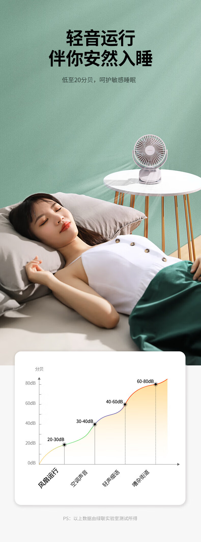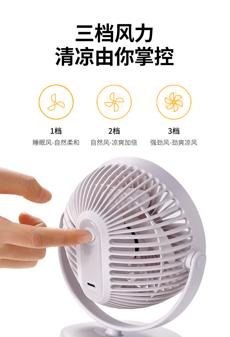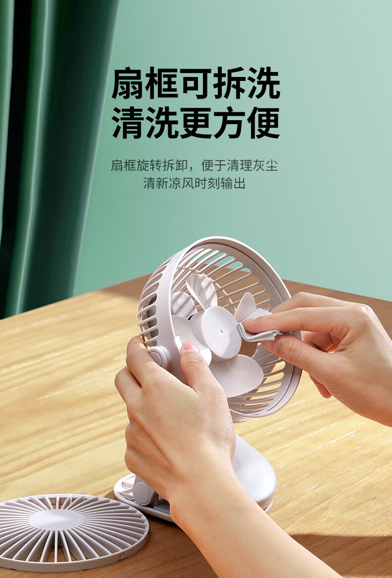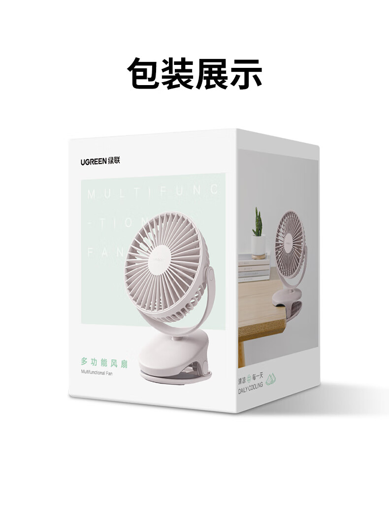 绿联 USB小风扇 办公室桌面学生宿舍床头低噪充电式电风扇 随身便携式迷你手持小型夹子风扇车载