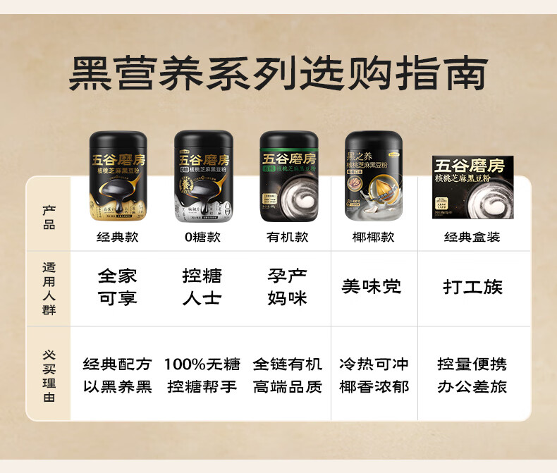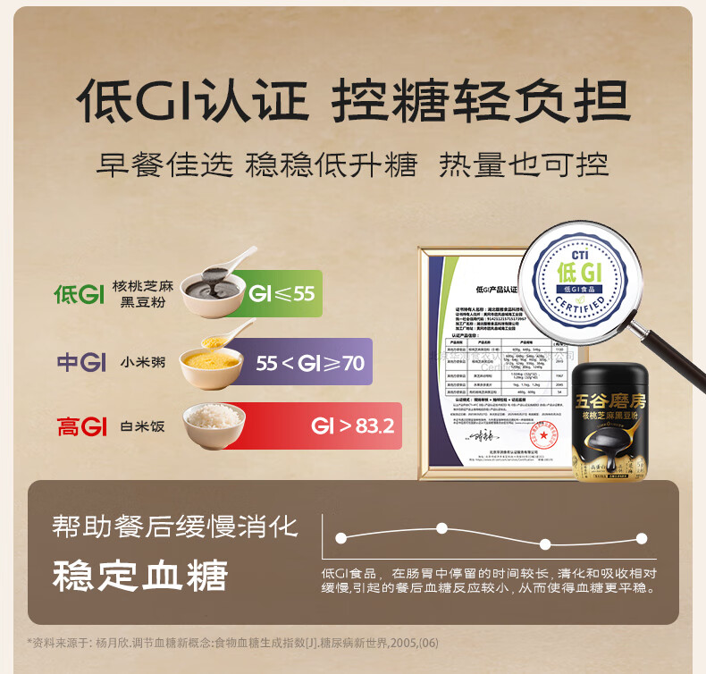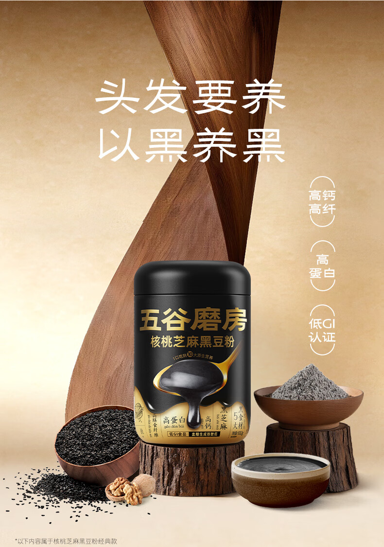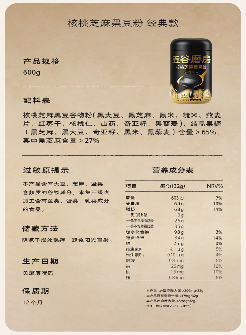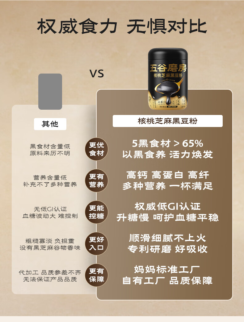 五谷磨房黑芝麻糊米糊低GI核桃芝麻黑豆粉即食早餐代餐粉黑芝麻糊炖奶600g