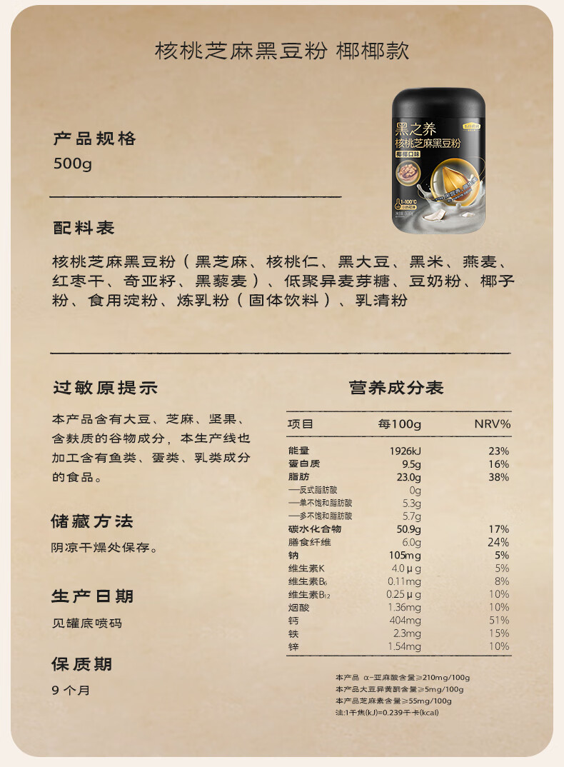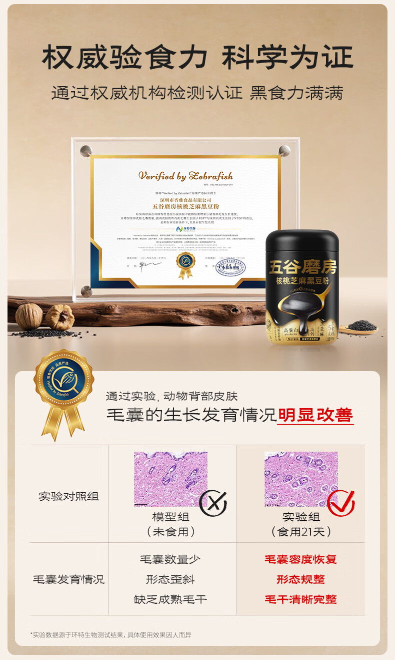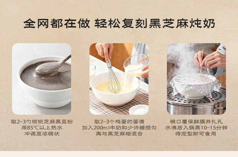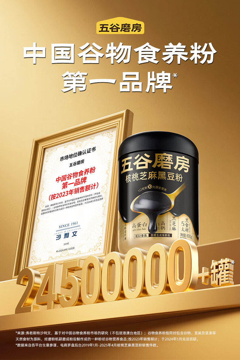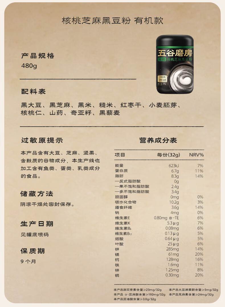 五谷磨房黑芝麻糊米糊低GI核桃芝麻黑豆粉即食早餐代餐粉黑芝麻糊炖奶600g
