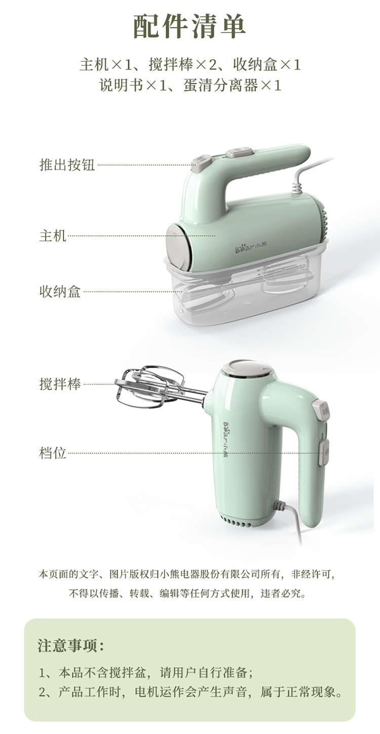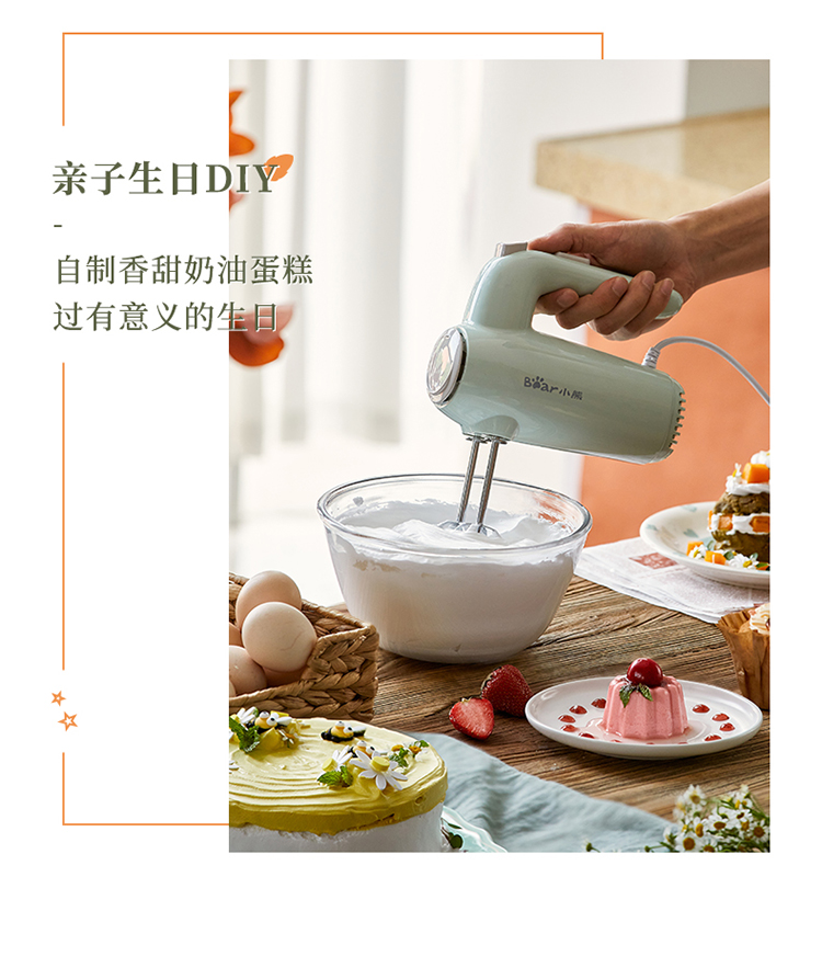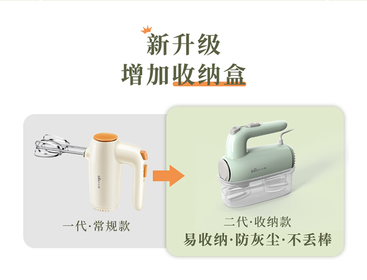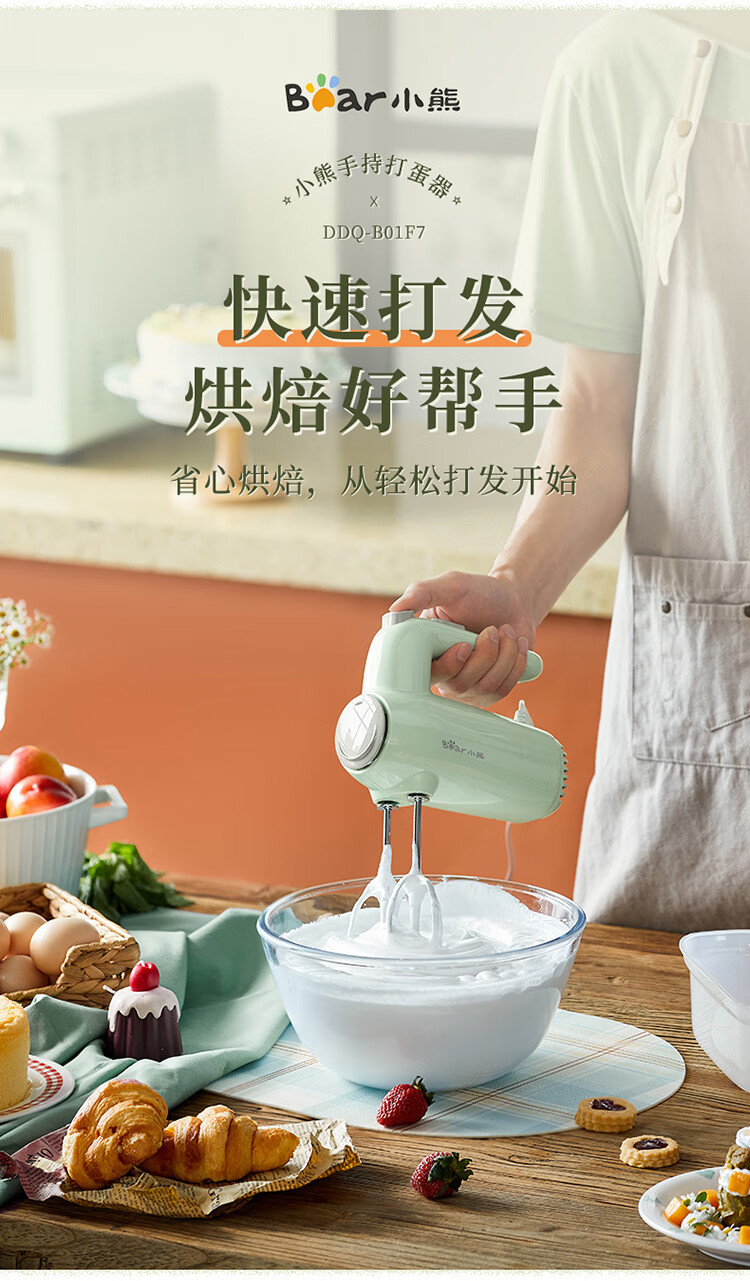 小熊(Bear)打蛋器 家用电动打蛋机 奶油奶盖打发器迷你 烘焙手持式搅蛋搅拌器 带收纳盒 DDQ-B01F7