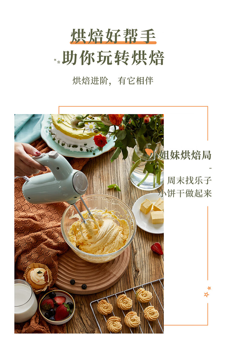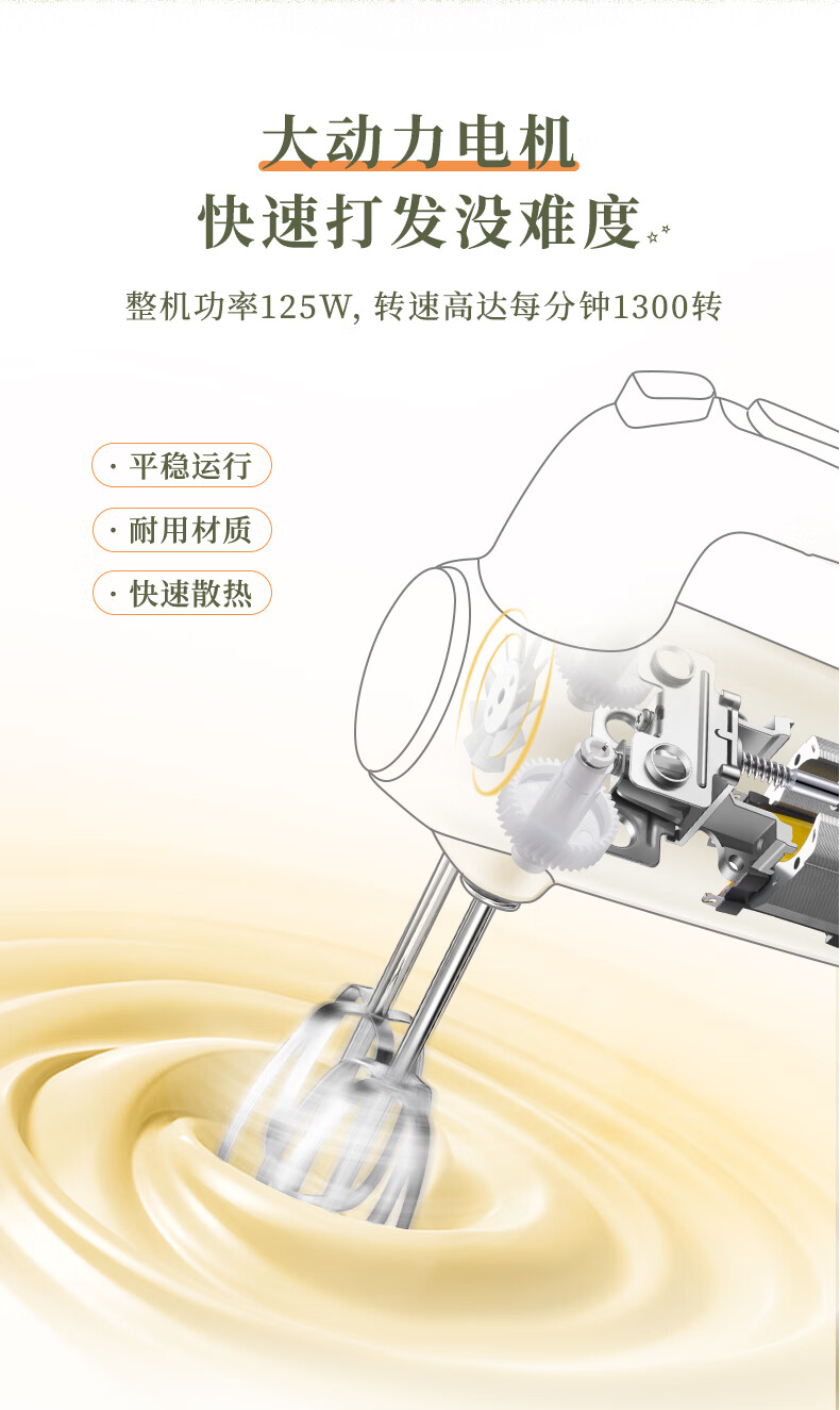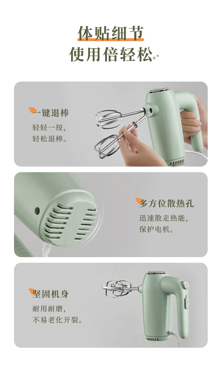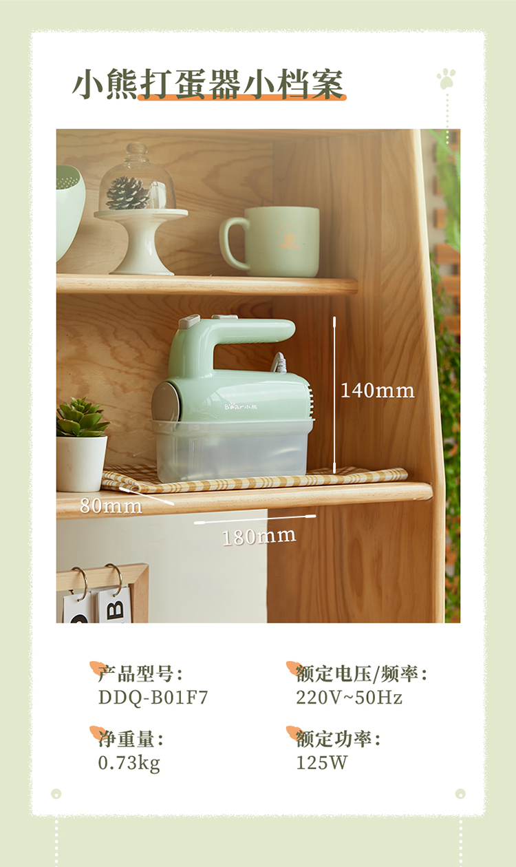 小熊(Bear)打蛋器 家用电动打蛋机 奶油奶盖打发器迷你 烘焙手持式搅蛋搅拌器 带收纳盒 DDQ-B01F7