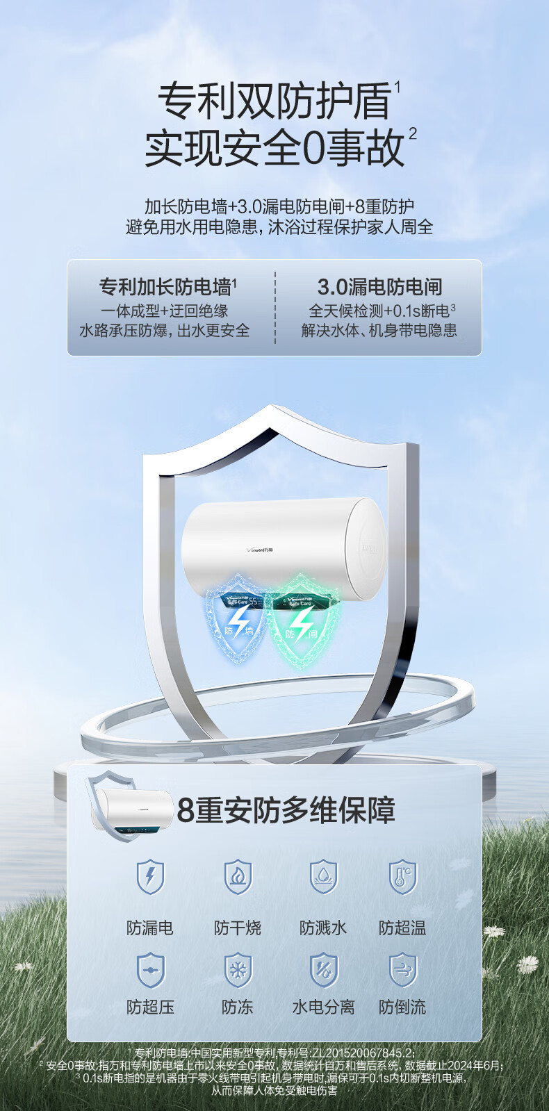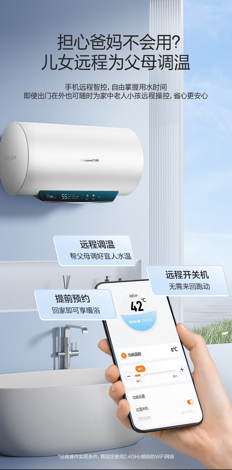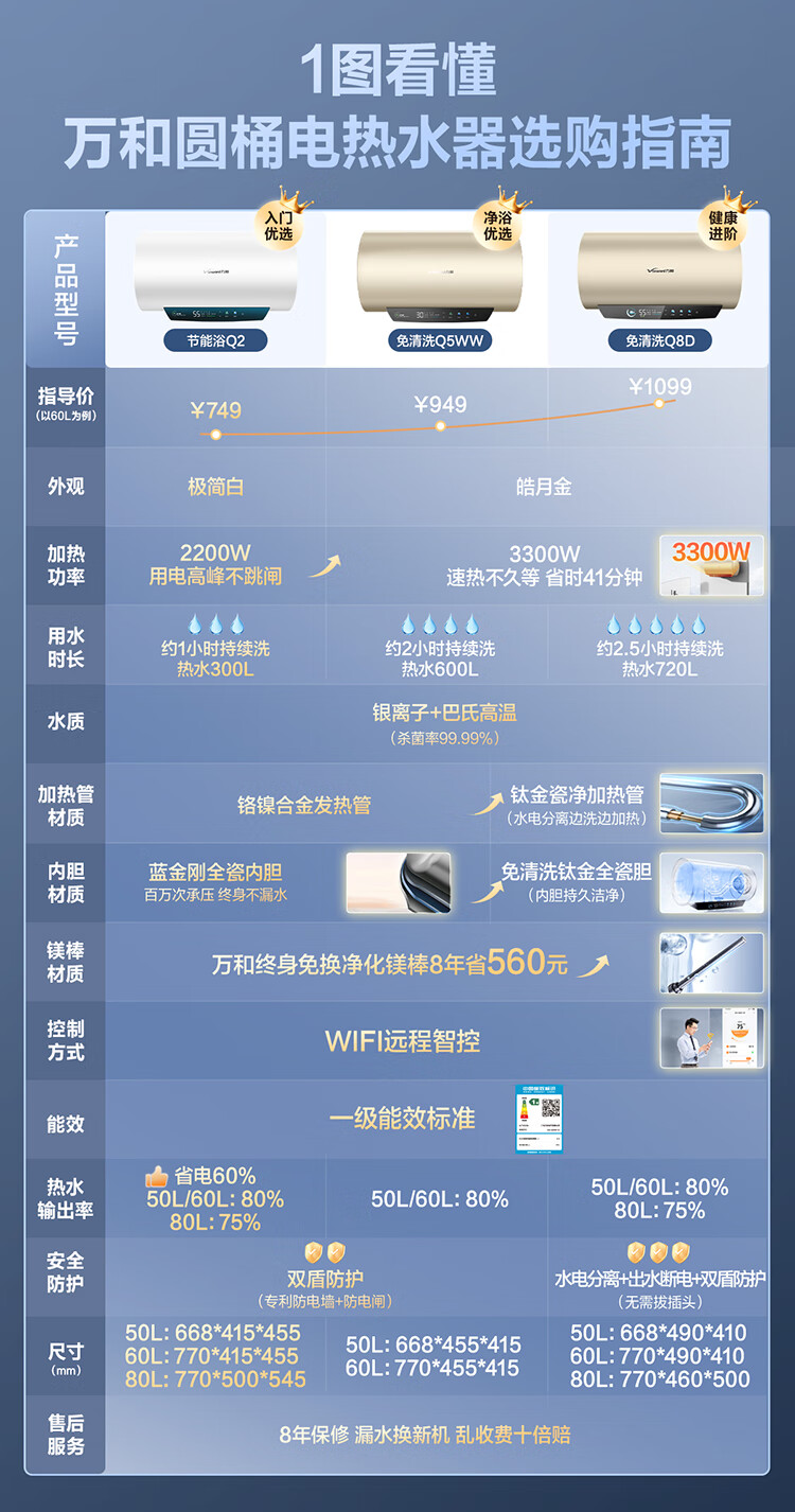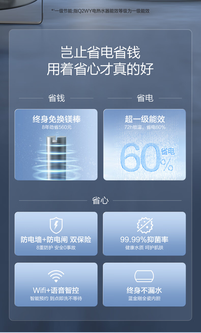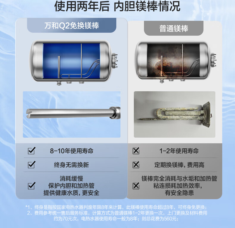 万和(Vanward)【节能星Q2】60升电热水器2200W速热免换镁棒超一级能效智感断电防护抑菌净水上门安装