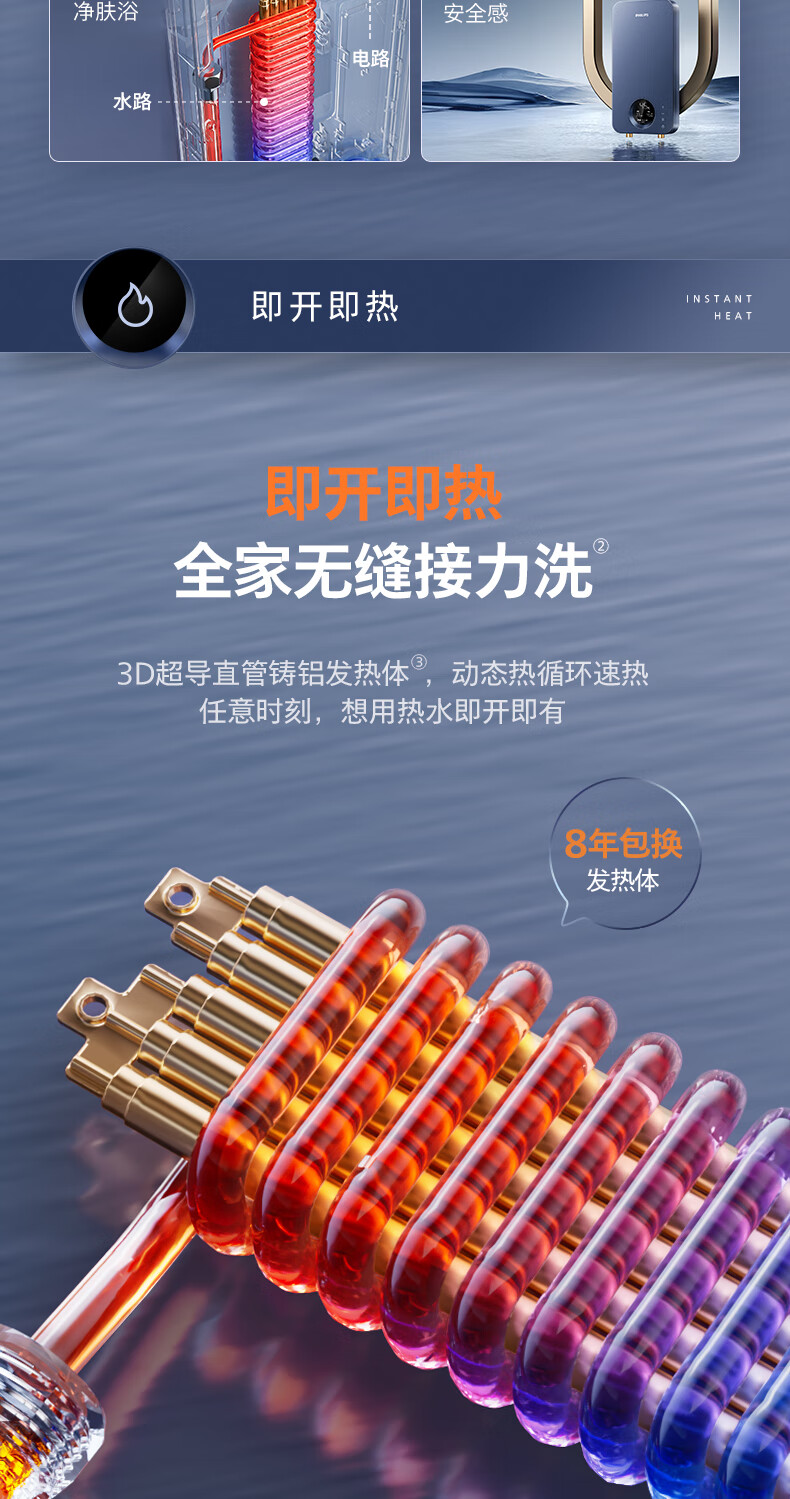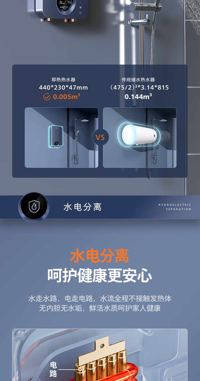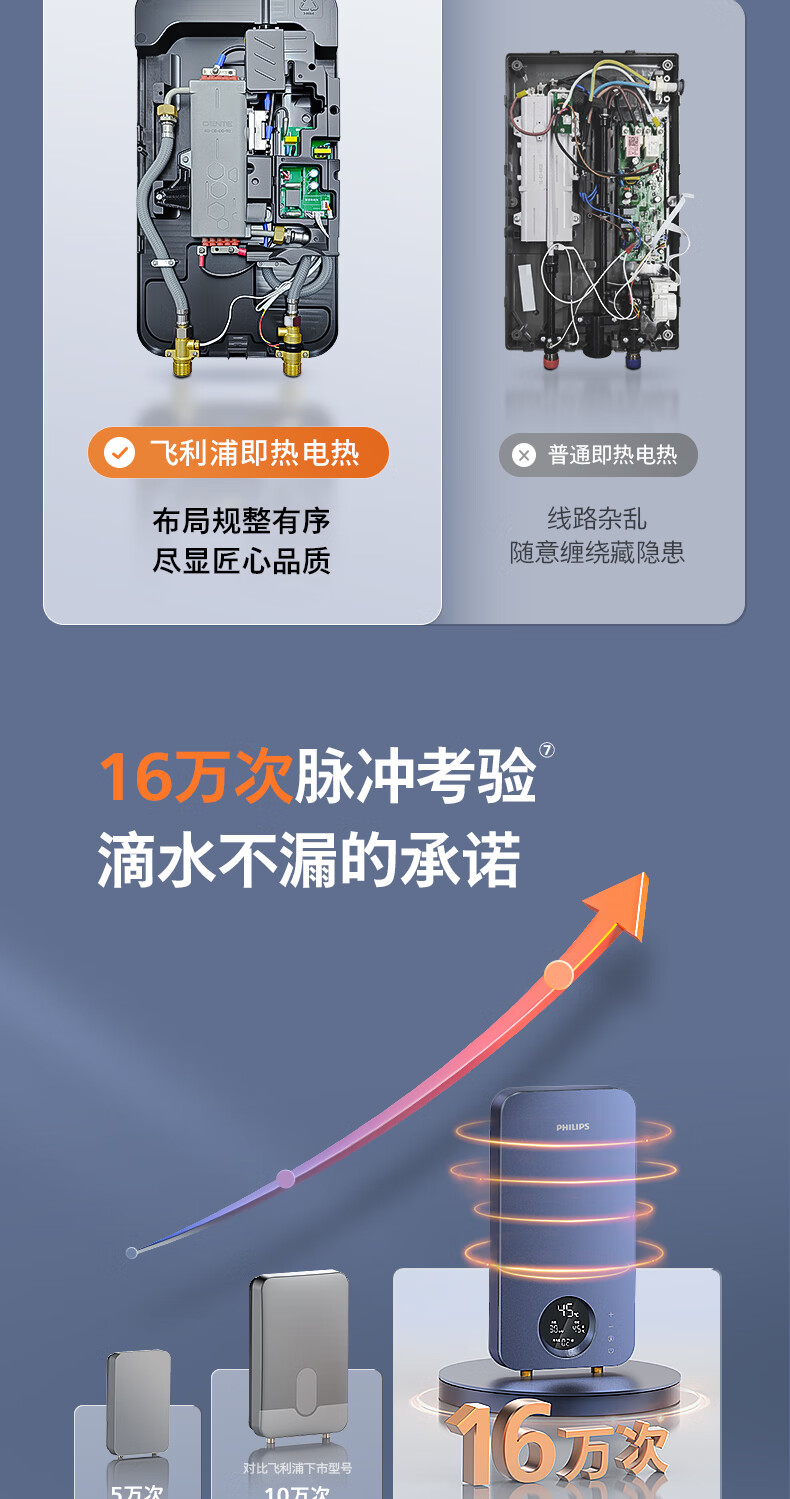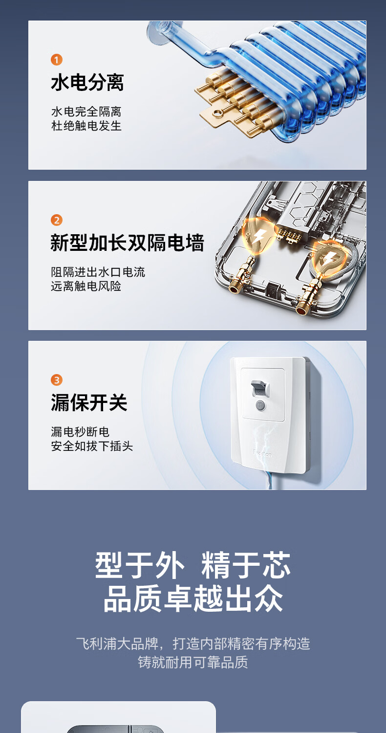 飞利浦(PHILIPS)即热式电热水器 电即热8500W速热无极变频智能恒温 无胆免储水AWH1028/93(85HB)