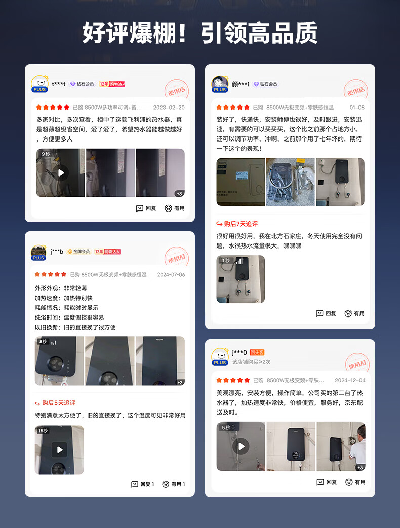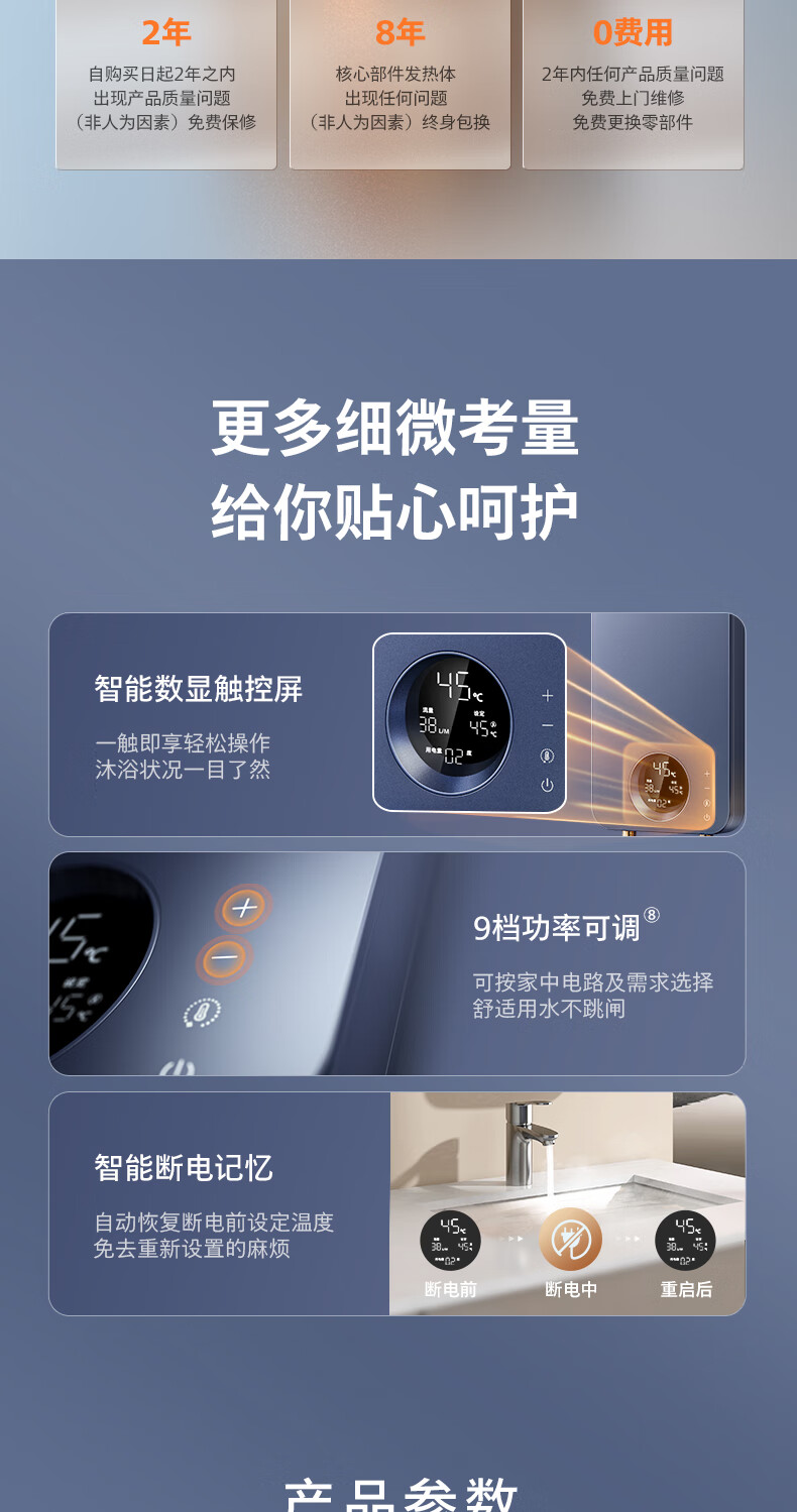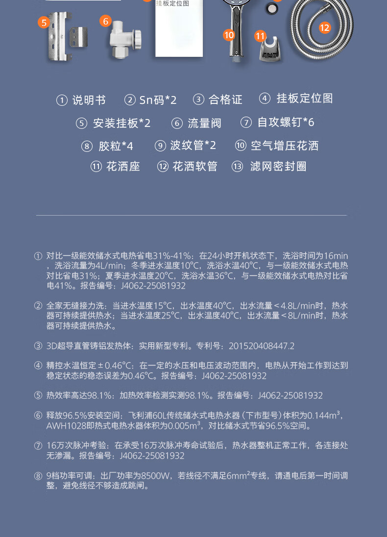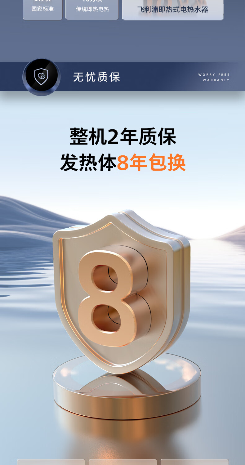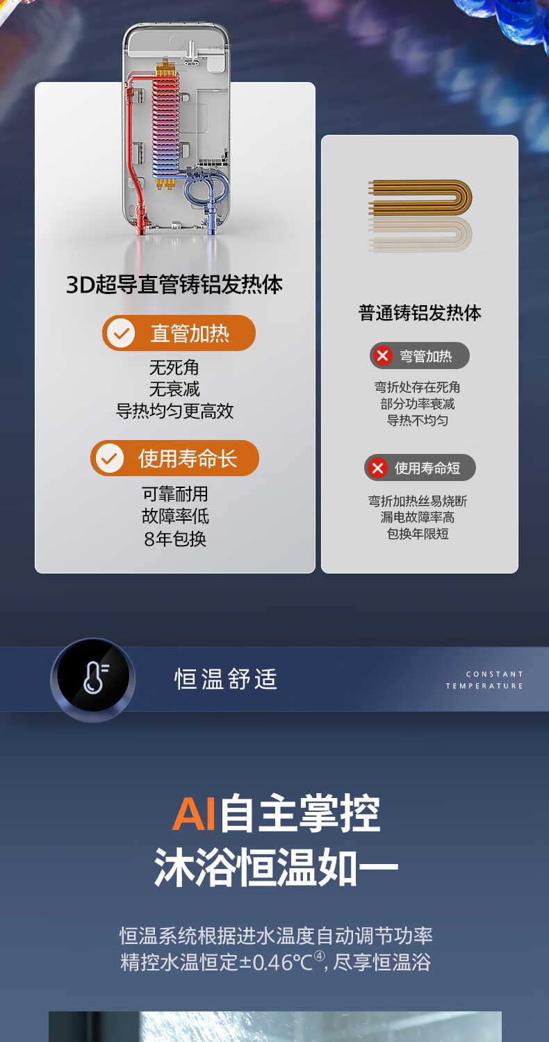 飞利浦(PHILIPS)即热式电热水器 电即热8500W速热无极变频智能恒温 无胆免储水AWH1028/93(85HB)