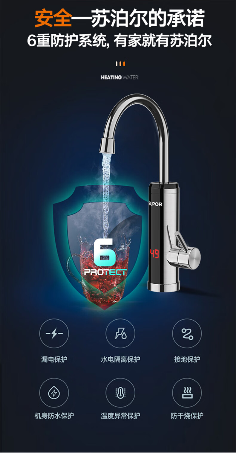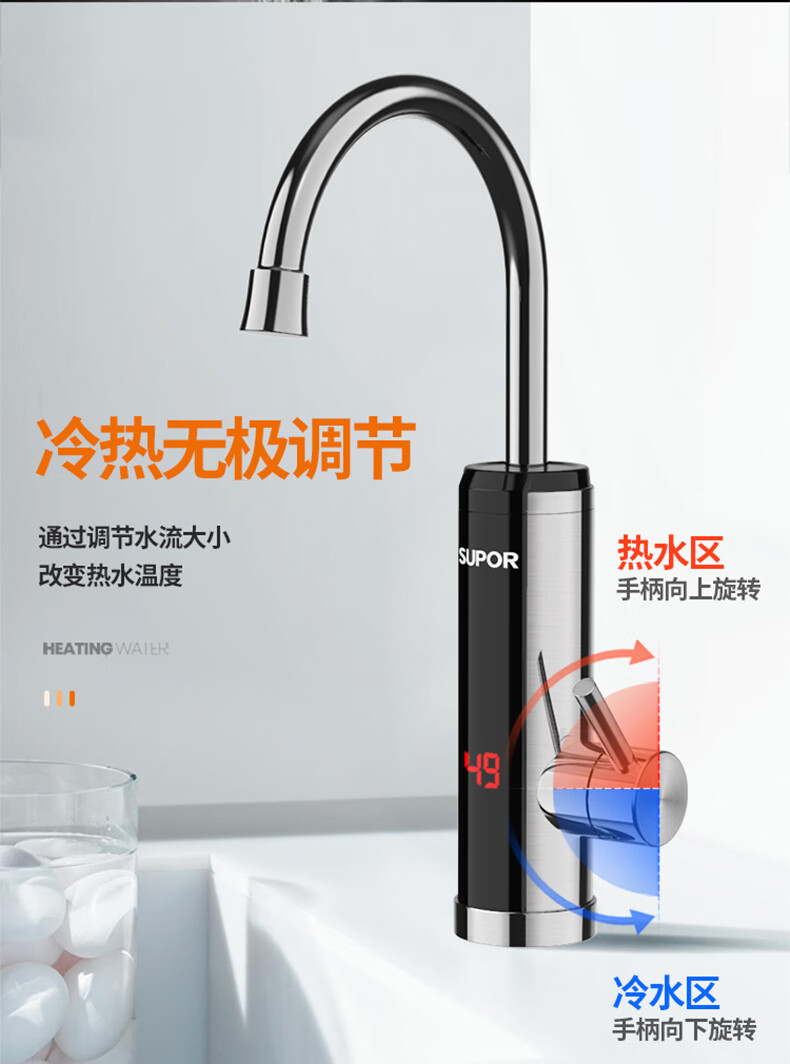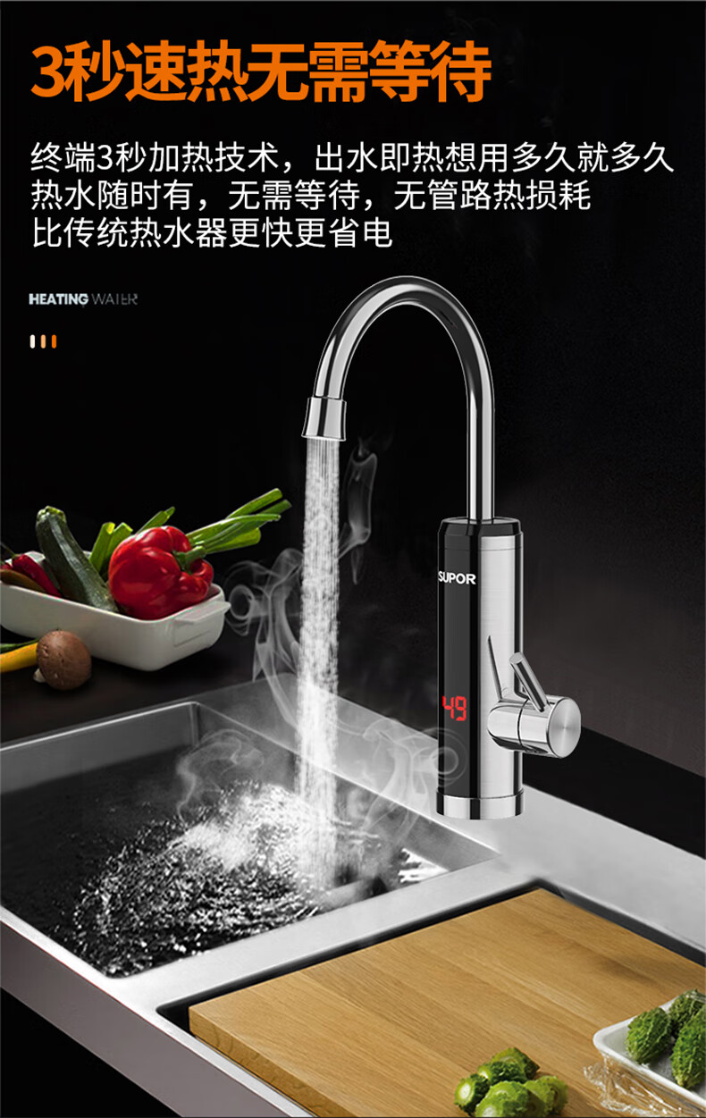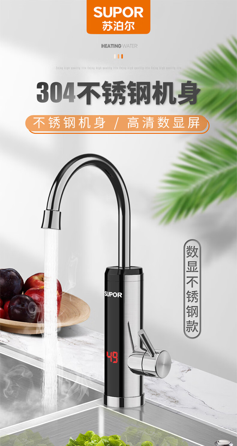 苏泊尔(SUPOR)电热水龙头不锈钢速热即热式热水器冷热过水热加热水龙头厨房热水宝卫生间加热器273047-01-LS