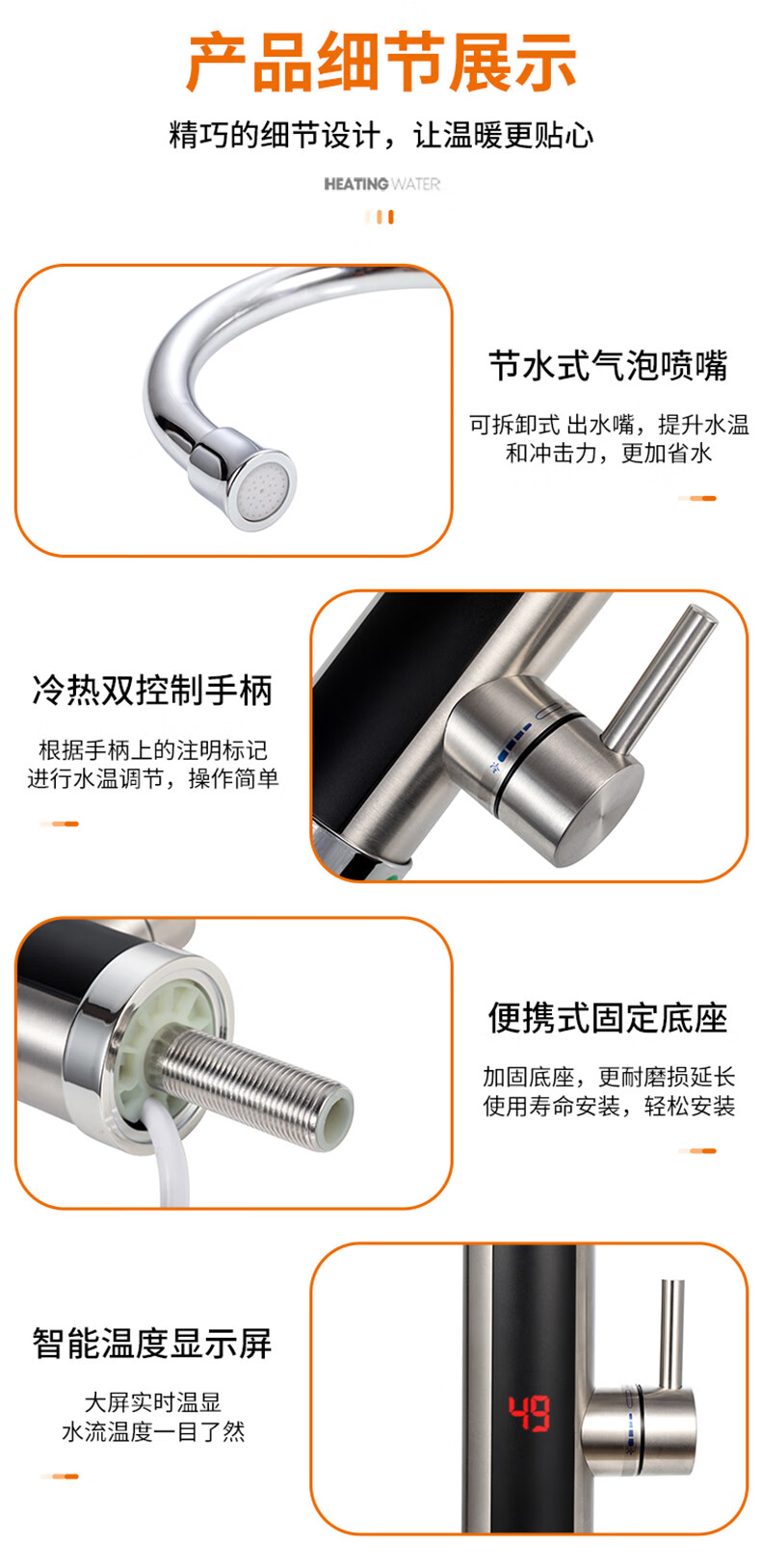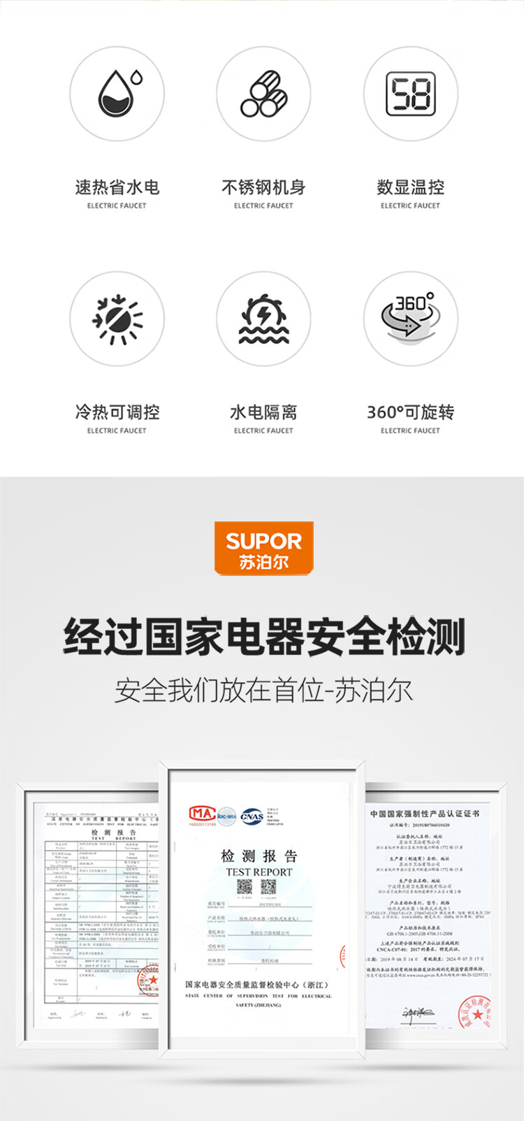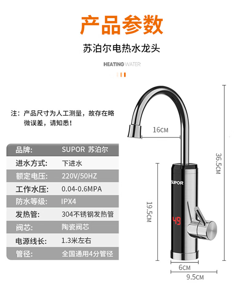 苏泊尔(SUPOR)电热水龙头不锈钢速热即热式热水器冷热过水热加热水龙头厨房热水宝卫生间加热器273047-01-LS