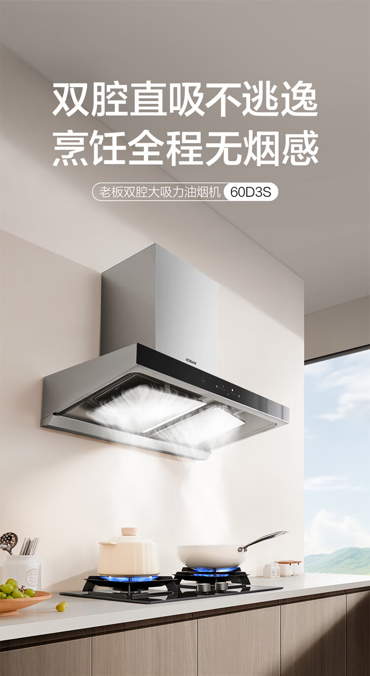 老板(Robam)双子星抽油吸烟机欧式顶吸变频24风量家用60D3S烟灶+55B7A灶具【套装商品】