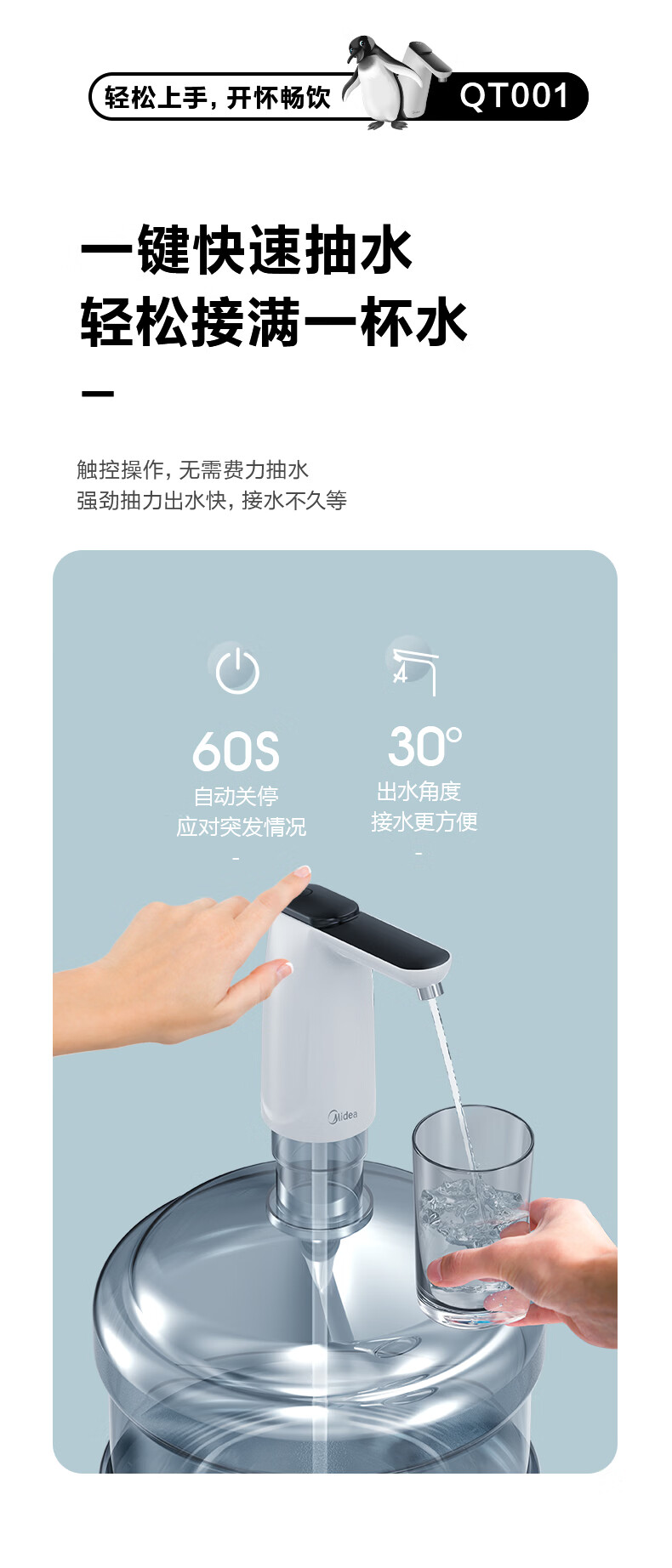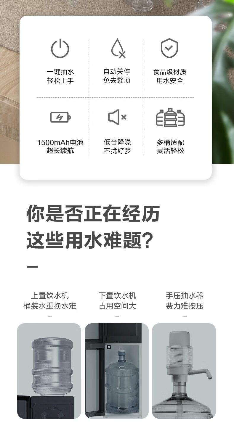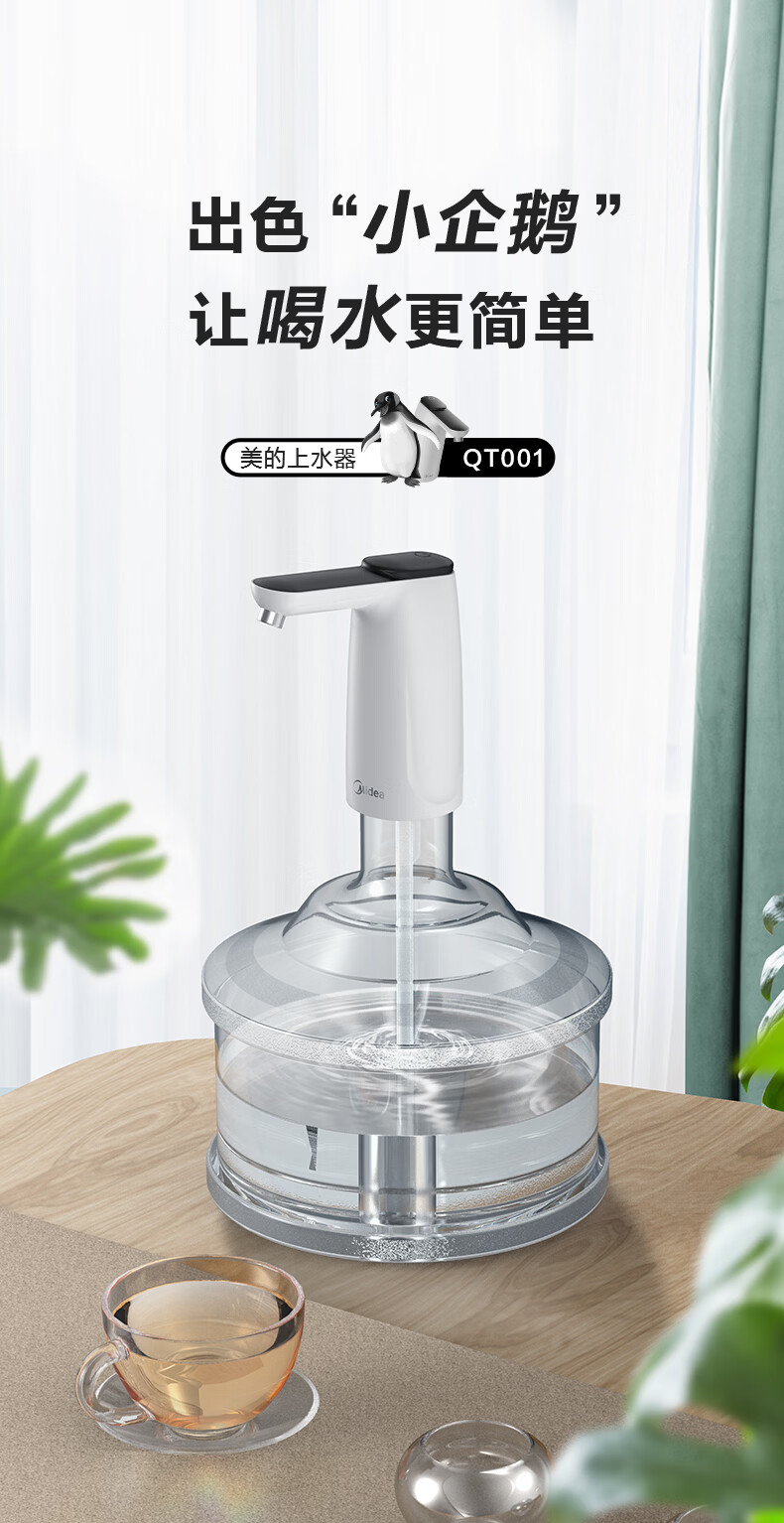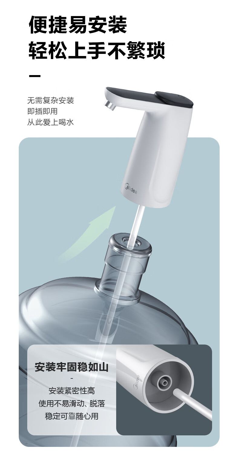 美的(Midea)上水器 饮水机家用 桶装水抽水器 电动压水器 租房推荐 宿舍水桶 抽水泵器QT001【食品级材质】