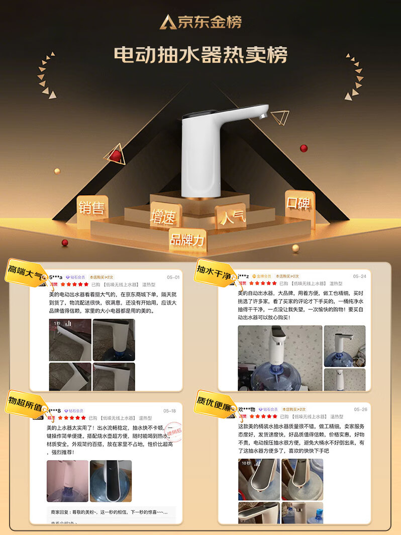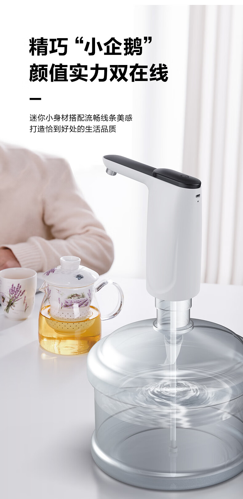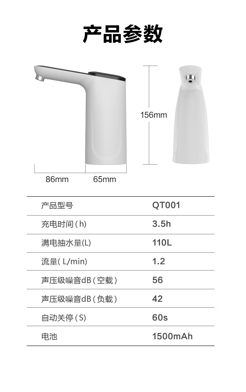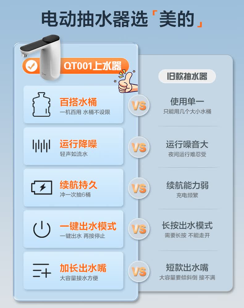 美的(Midea)上水器 饮水机家用 桶装水抽水器 电动压水器 租房推荐 宿舍水桶 抽水泵器QT001【食品级材质】