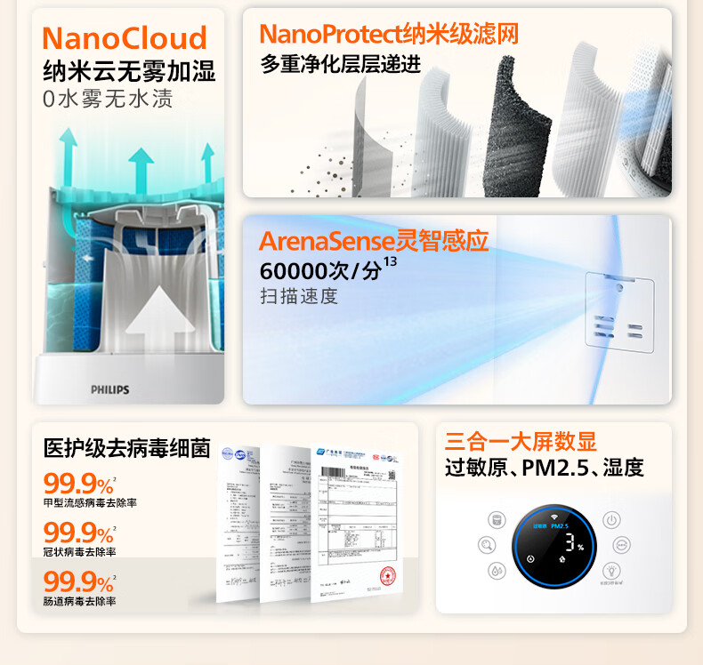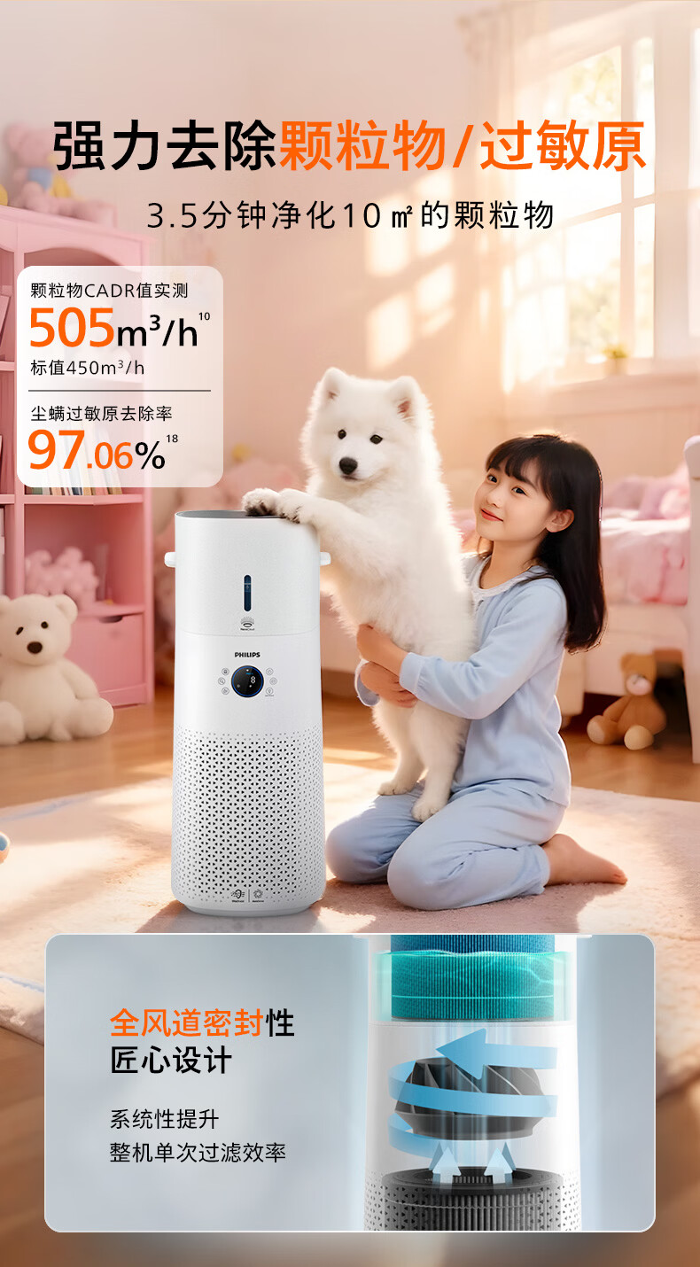 飞利浦(PHILIPS)空气净化器加湿器一体机除甲醛烟味神器新房孕妇婴儿专业家用室内换气净化机除花粉过敏原AC3737