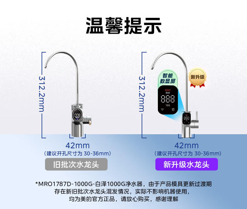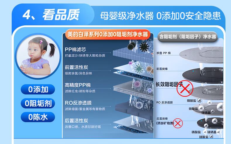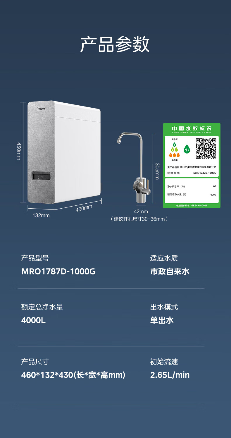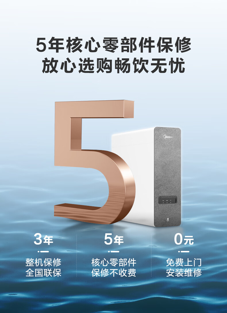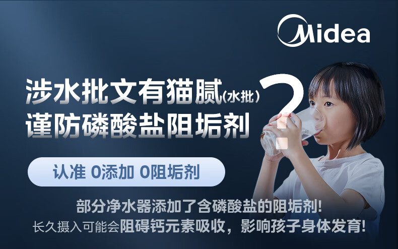 美的(Midea)净水器家用0阻垢剂白泽1000G 5年长效RO反渗透 厨下式净水机过滤器直饮机净水机 智能数显