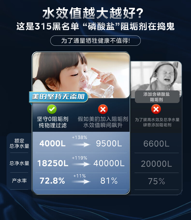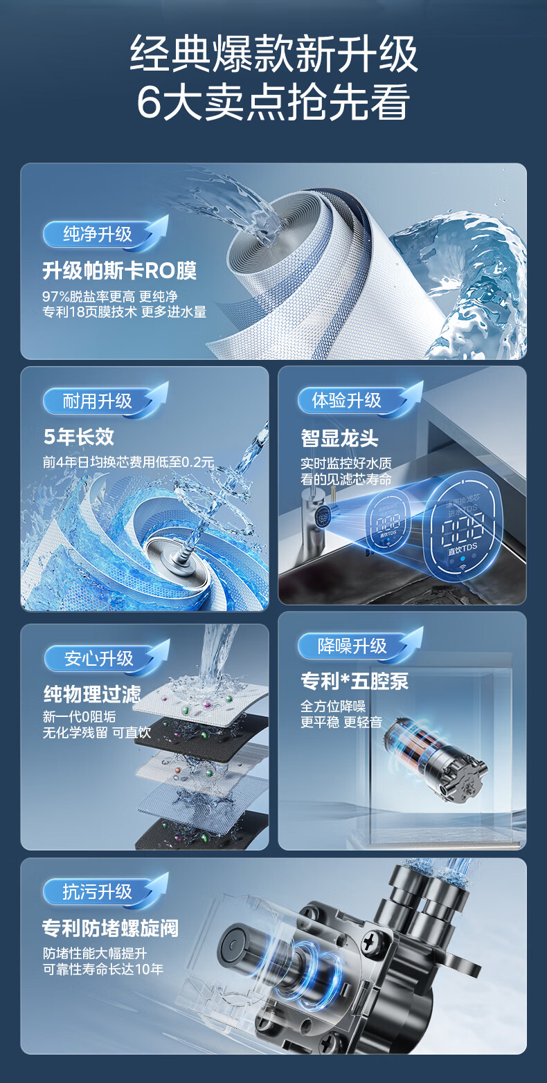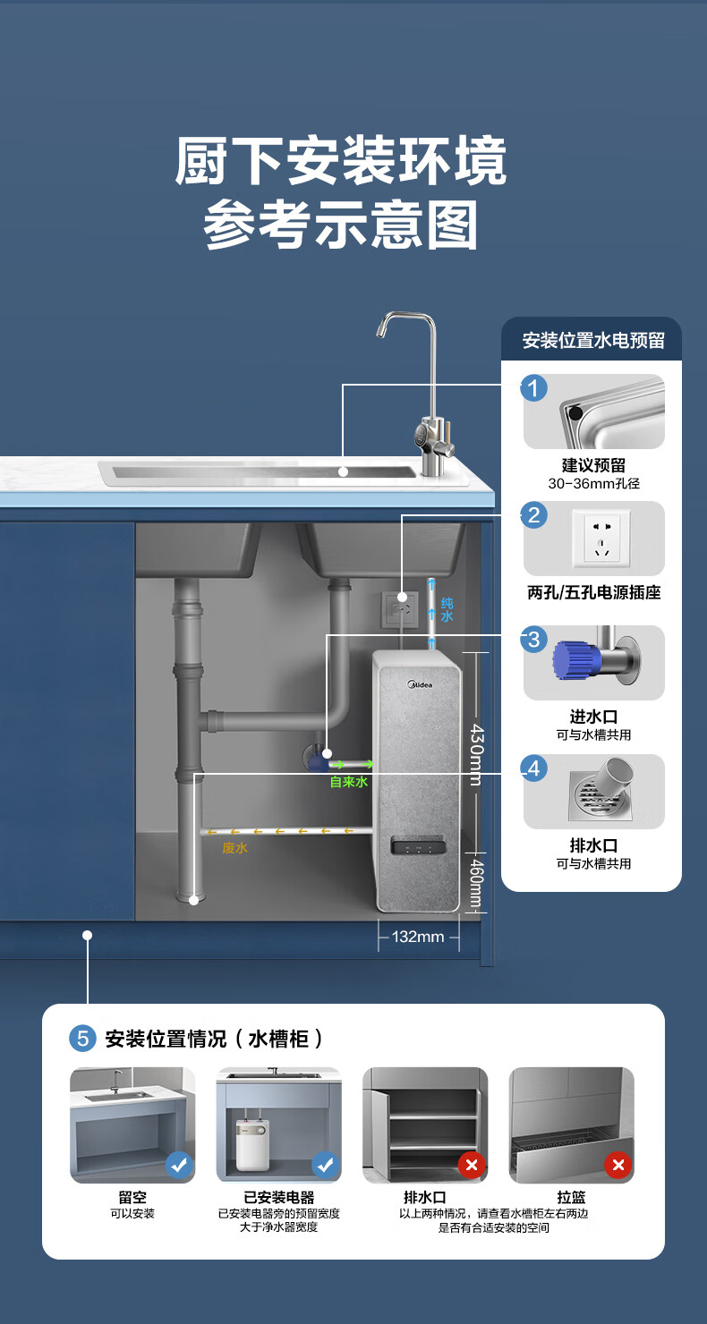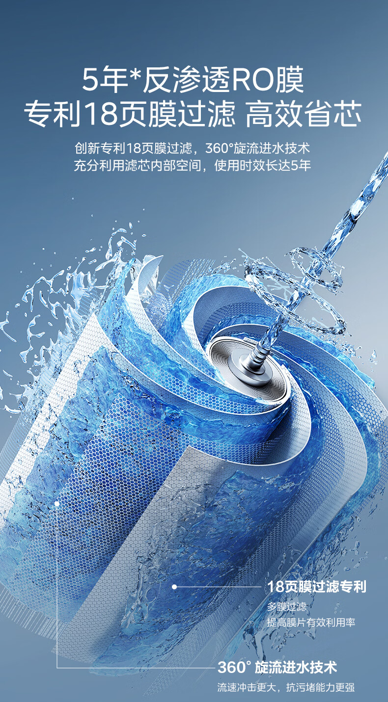 美的(Midea)净水器家用0阻垢剂白泽1000G 5年长效RO反渗透 厨下式净水机过滤器直饮机净水机 智能数显