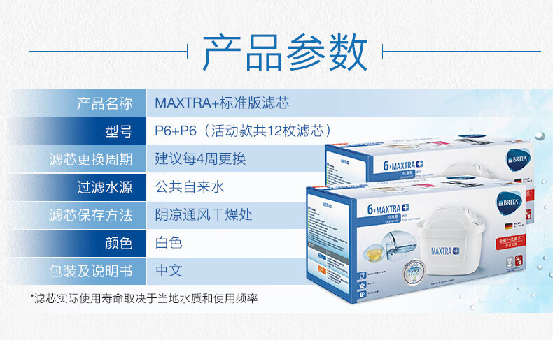 碧然德滤水壶滤芯 Maxtra+多效滤芯6只装 过滤净水器滤芯 家用滤水壶滤芯 新升级标准版滤芯